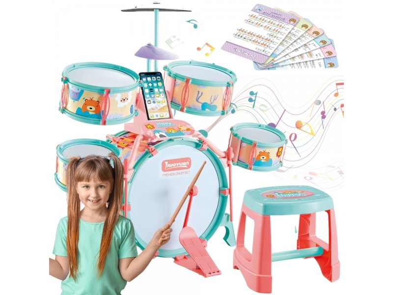 Vaikiškas būgnų rinkinys - 5 būgnai su kėdute ir telefono laikikliu
