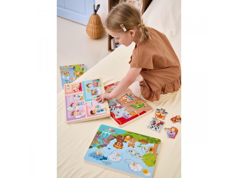 • Spalvingos dėlionės detalės vaizduoja įvairius gamtos reiškinius.