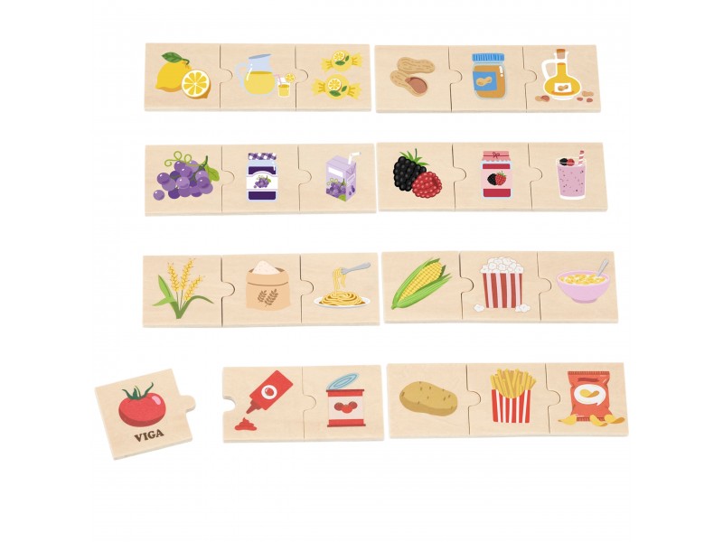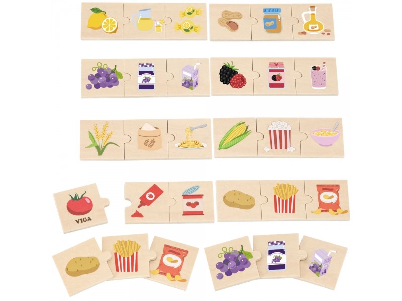 Šis nuostabus VIGA dėlionių rinkinys linksmu ir interaktyviu būdu supažindins jūsų mažylį su maisto gamybos procesais. Žaisdamas vaikas išmoks, kaip įvairūs augalai virsta gardžiais kasdieniais produktais. Dėliodami ir derindami augalus su galutiniais produktais, tokiais kaip spragėsiai, grūdų dribsniai, riešutų sviestas ar makaronai, vaikai ne tik lavins smulkiąją motoriką, bet ir supras, iš kur atkeliauja jų mėgstami skanėstai. Tai puiki priemonė, skatinanti smalsumą ir supratimą apie mus supantį pasaulį.