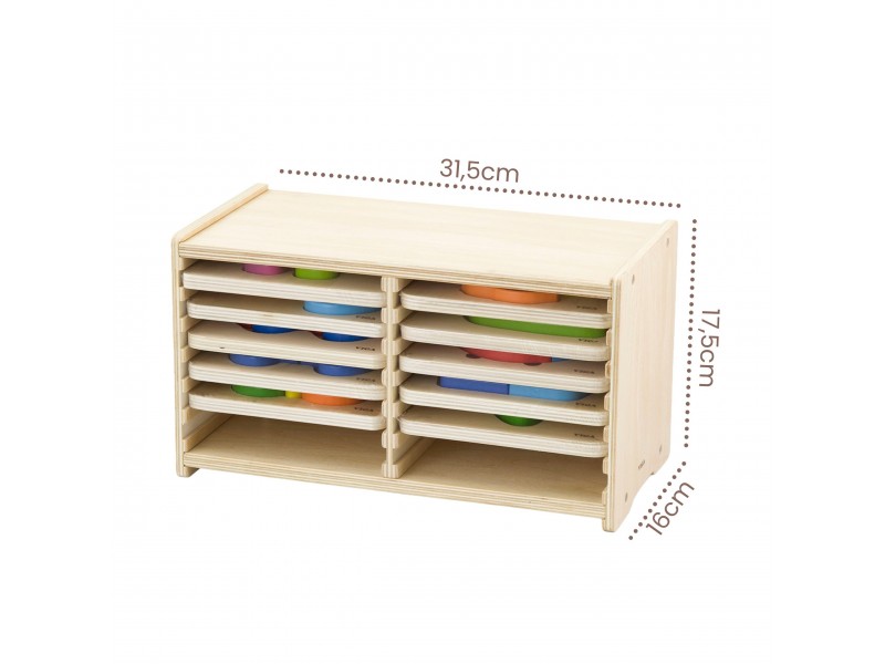 - 12 medinių lentelių su dėlionėmis.