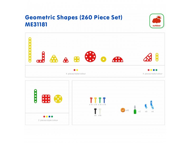 Atraskite beribes kūrybos galimybes su šiuo įspūdingu 260 detalių geometrinių figūrų rinkiniu, sukurtu specialiai Masterkidz STEM sieninėms lentoms. Šis konstruktorius – tai puikus įrankis, skatinantis vaikus mokytis žaidžiant. Dėliodami įvairiaspalves detales, tokias kaip kvadratai, trikampiai ar apskritimai, mažieji konstruotojai ne tik smagiai leis laiką, bet ir lavins planavimo, problemų sprendimo bei komandinio darbo įgūdžius. Rinkinys įkvepia kurti tiek simetriškus ornamentus, tiek realistiškus objektus, pavyzdžiui, gėles ar sudėtingas konstrukcijas. Detalės su skylutėmis lengvai tvirtinamos prie paviršiaus varžtais, todėl tinka naudoti ant STEM sienų, stalų ar vežimėlių.