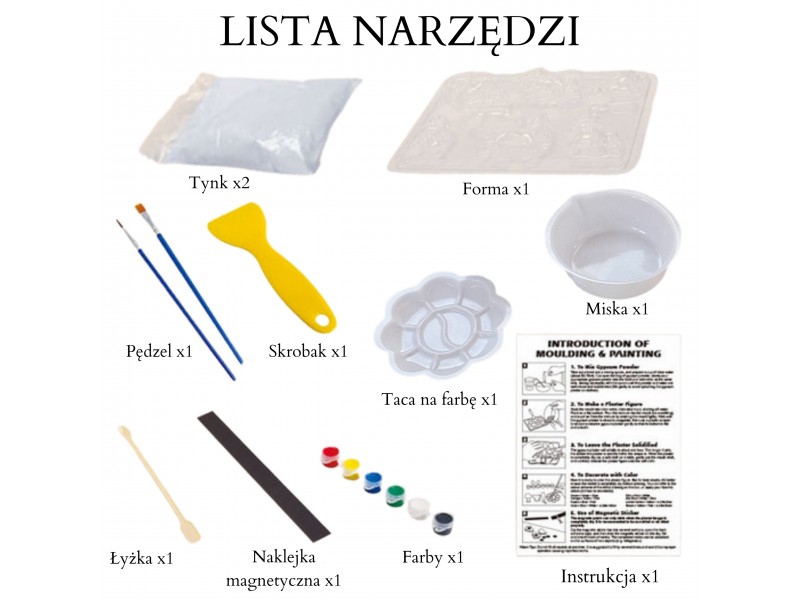 - Dažai ir įrankiai komplekte – rasite viską, ko reikia darbui!