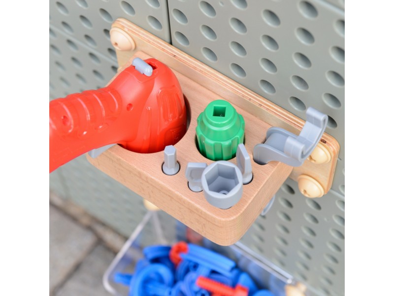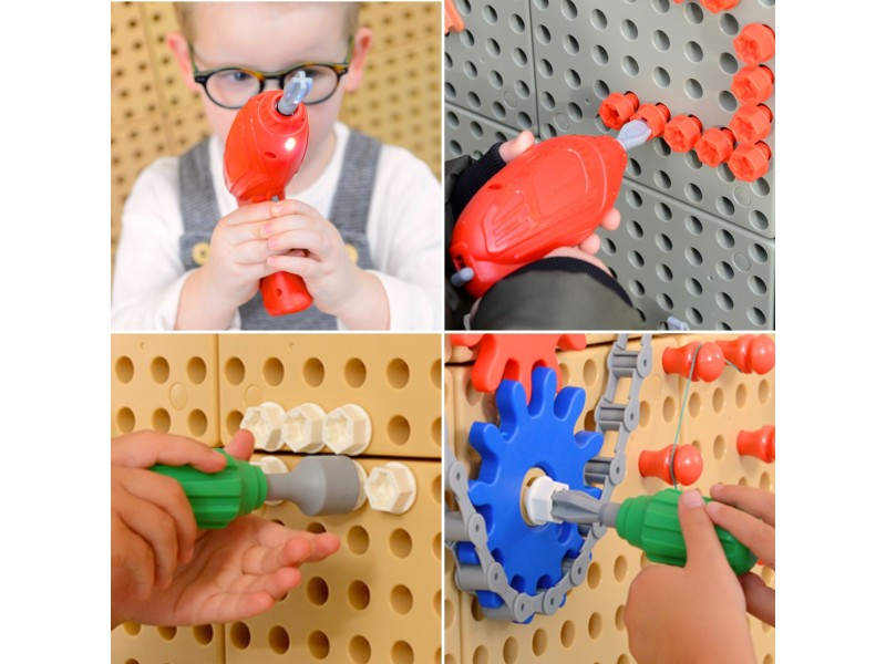 - Vaikiškų įrankių rinkinys – suktuvas, atsuktuvas ir veržliaraktis, leisiantys pasijusti kaip tikram meistrui!
