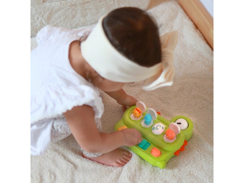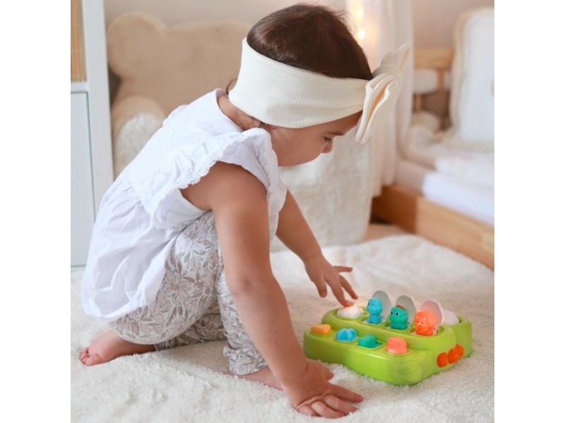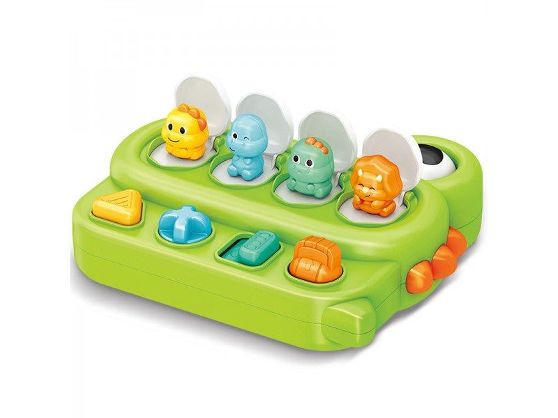 „Woopie“ prekės ženklo lavinamasis žaislas „Iššokantys dinozaurai“ – tai puikus mokslo ir pramogų derinys mažiesiems tyrinėtojams. Pasukus rankenėlę, paspaudus mygtukus ar aktyvavus jungiklį, dinozauras netikėtai iššoka! Šis interaktyvus „pop-up“ tipo žaislas yra kokybiškai pagamintas, patvarus ir atsparus pažeidimams. Žaislo korpusas, sukurtas dinozauro forma, dar labiau skatina vaiko smalsumą ir įsitraukimą į žaidimą. Tai puiki dovana, kuri ne tik suteikia džiaugsmo, bet ir padeda lavinti motorinius įgūdžius bei suprasti priežasties ir pasekmės ryšį.