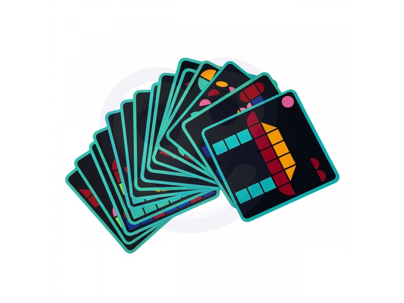 - Rinkinyje esančios kortelės su pavyzdžiais padeda vaikams kurti įvairias formas ir raštus.