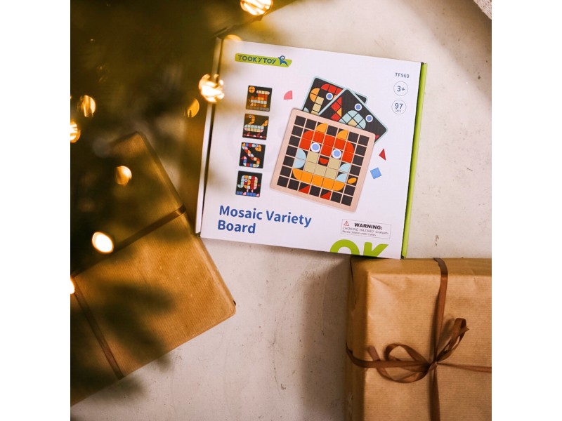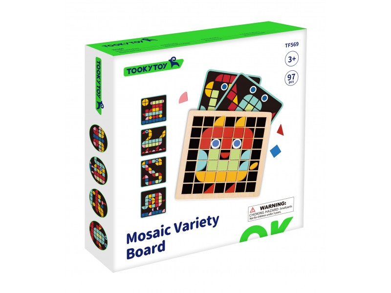 Ši „Tooky Toy“ medinė mozaika yra puikus lavinamasis žaislas jūsų vaikui. Rinkinį sudaro net 97 elementai, todėl mažylis galės mėgautis kūrybišku žaidimu ištisas valandas. Dėliodamas įvairiaspalves kaladėles vaikas mokosi atpažinti spalvas ir geometrines figūras. Tai puikus žaislas, tinkamas žaisti ir vienam. Žaislas pagamintas iš aukščiausios kokybės, aplinkai draugiškų medžiagų, neturi aštrių briaunų, todėl yra visiškai saugus vaikams. Formų ir spalvų derinimas, paveikslėlių kūrimas atlieka svarbų vaidmenį teisingam vaiko vystymuisi, skatina kūrybiškumą ir lavina vaizduotę.