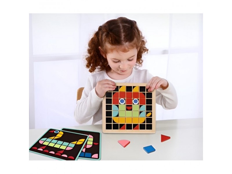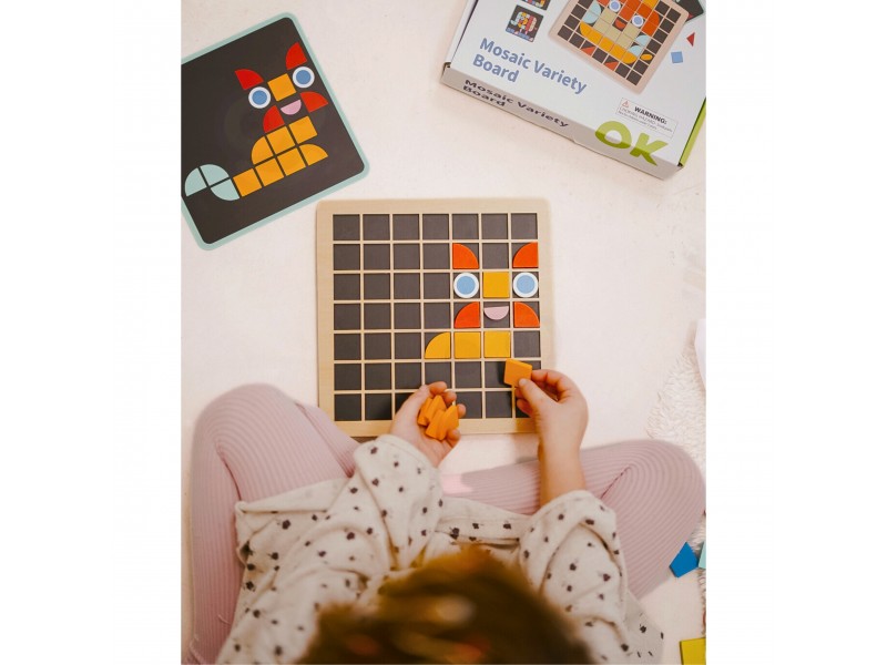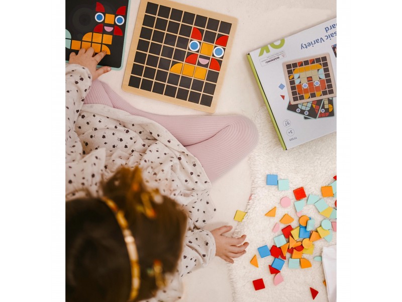 - Mozaikos rinkinys skatina vaikus mokytis spalvų, figūrų ir atskleisti savo kūrybinį potencialą.