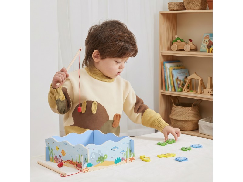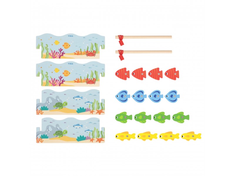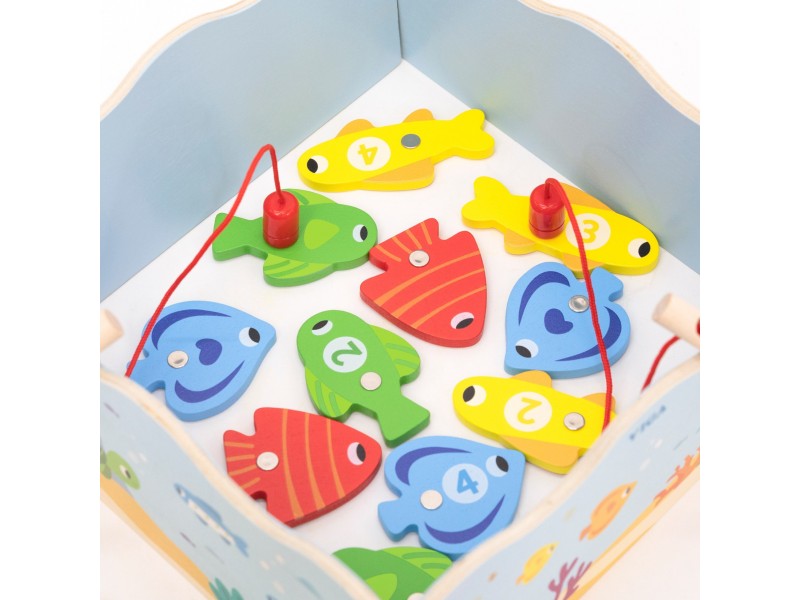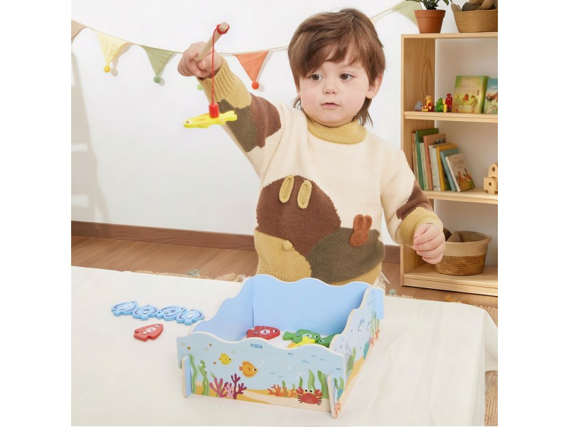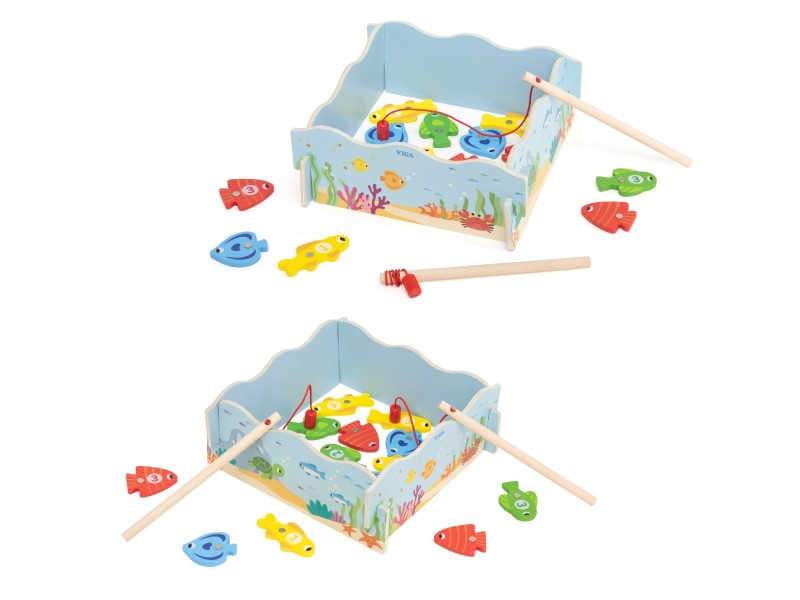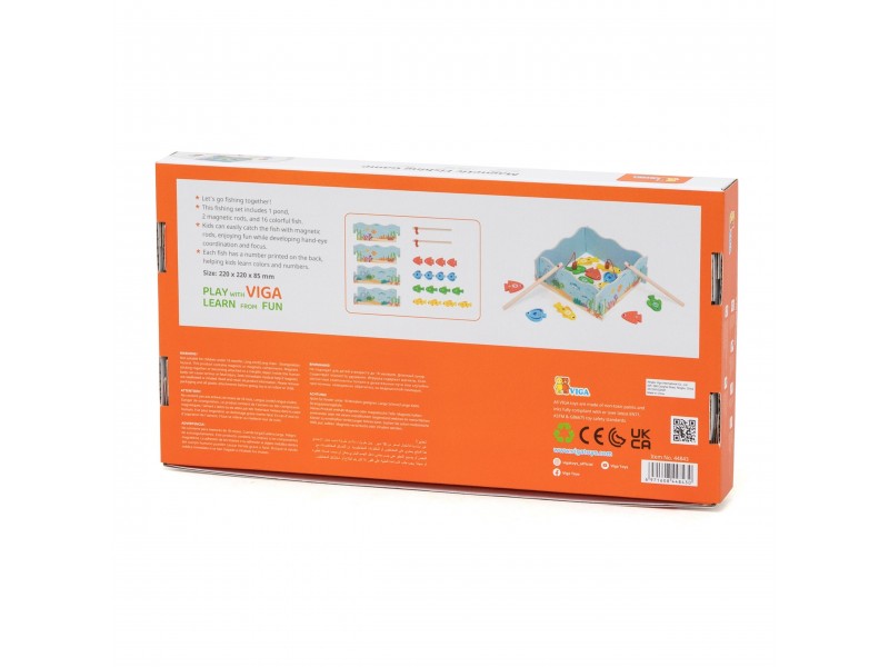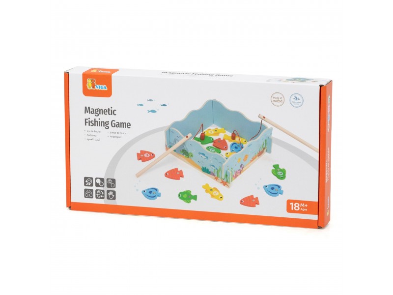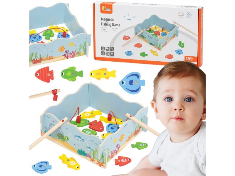 Medinis magnetinis žaidimas „Žvejyba“ iš prekės ženklo „Viga“ leidžia mažyliui smagiai gaudyti spalvotas žuvytes, naudojant saugią meškerę su magnetu. Kiekviena žuvytė turi savo skaičių, todėl šis žaislas švelniai supažindina vaiką su skaičių ir spalvų pasauliu. Rinkinio dėžutė atlieka tvenkinio funkciją, o pasibaigus linksmybėms, ji puikiai tinka visiems elementams tvarkingai laikyti. Tai ideali dovana vaikams nuo 18 mėnesių amžiaus, efektyviai lavinanti rankų įgūdžius bei rankų ir akių koordinaciją.