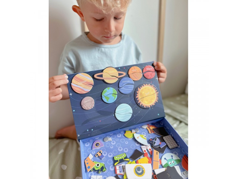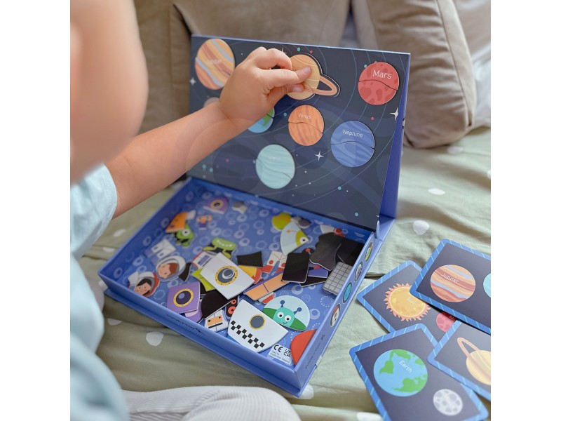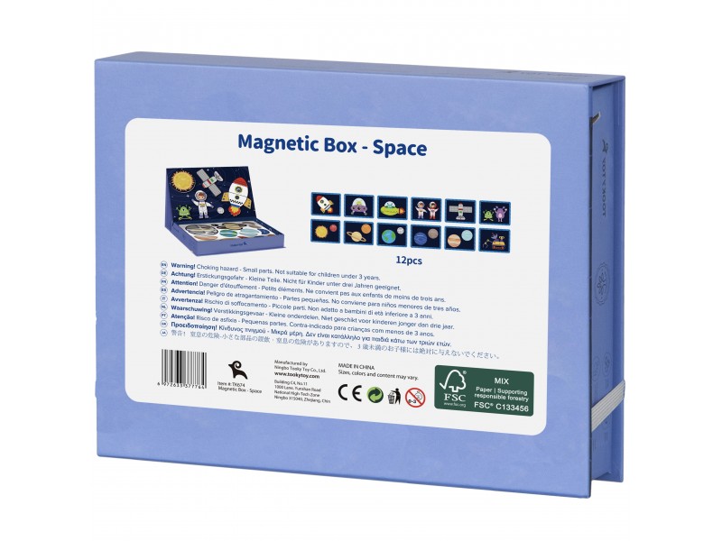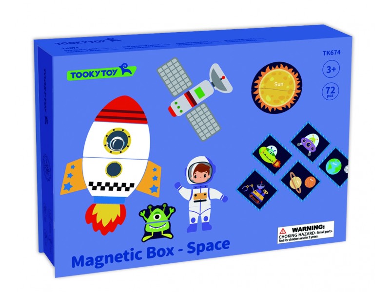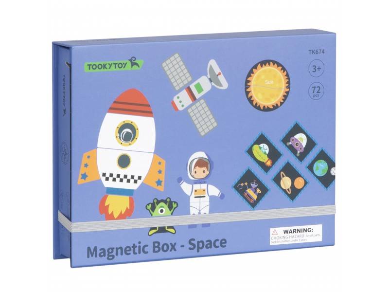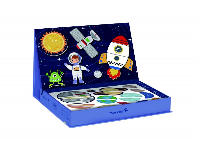 Ši magnetinė „Tooky Toy“ dėlionė – tai vaizduotę žadinantis ir įtraukiantis rinkinys, kuris nukels jaunuosius atradėjus į nepaprastą kosmoso nuotykį. Žavingoje dėžutėje vaikai atras net 12 unikalių kosmoso tematikos paveikslėlių. Kiekvienas jų yra išradingai padalintas į keturias ar penkias magnetines detales, kurias itin lengva sujungti tarpusavyje. Rinkinio magija slypi magnetiniuose lipdukuose, kurie be vargo prilimpa prie pridedamos magnetinės lentos, todėl vaikai gali lengvai kurti savo kosminius šedevrus. Tapę jaunaisiais astronautais, vaikai galės išlaisvinti savo fantaziją, dėliodami magnetines detales ir kurdami unikalias kosmoso scenas. Interaktyvus žaislas lavina problemų sprendimo įgūdžius ir smulkiąją motoriką, tuo pačiu skatindamas kūrybiškumą. Tai ne tik puikus edukacinis žaislas, bet ir nesibaigiančių pramogų šaltinis, skatinantis tyrinėti, kurti ir mokytis.