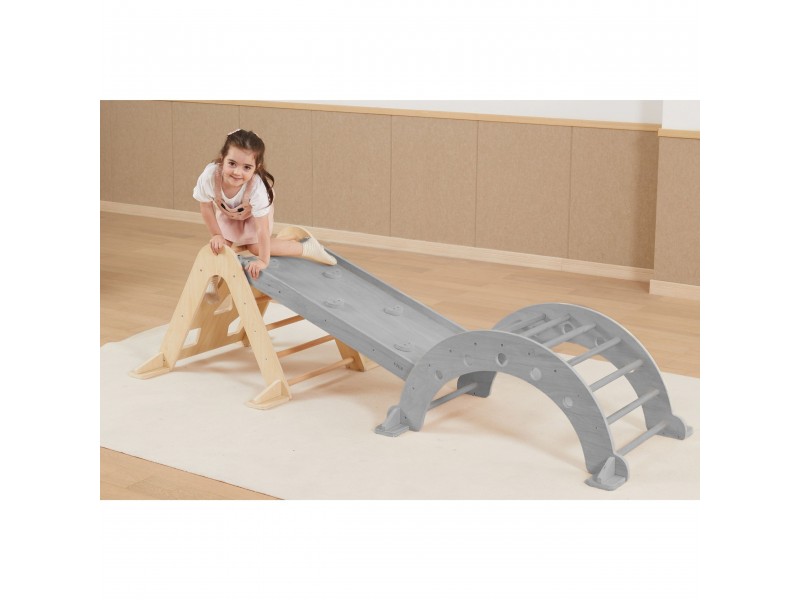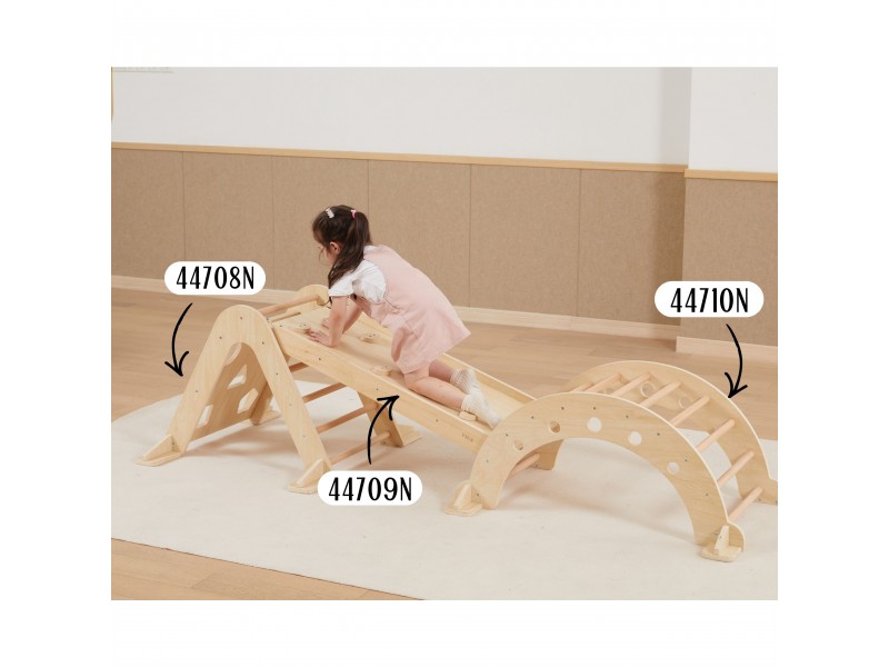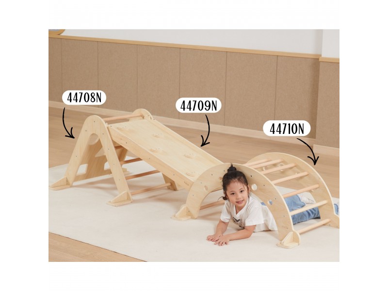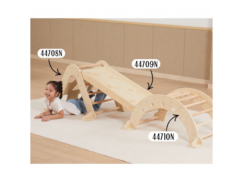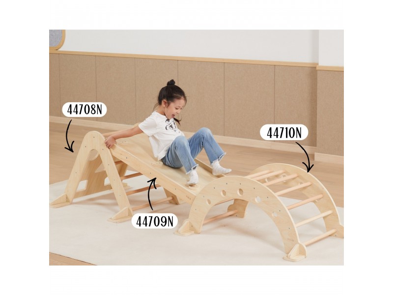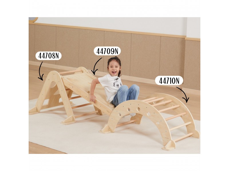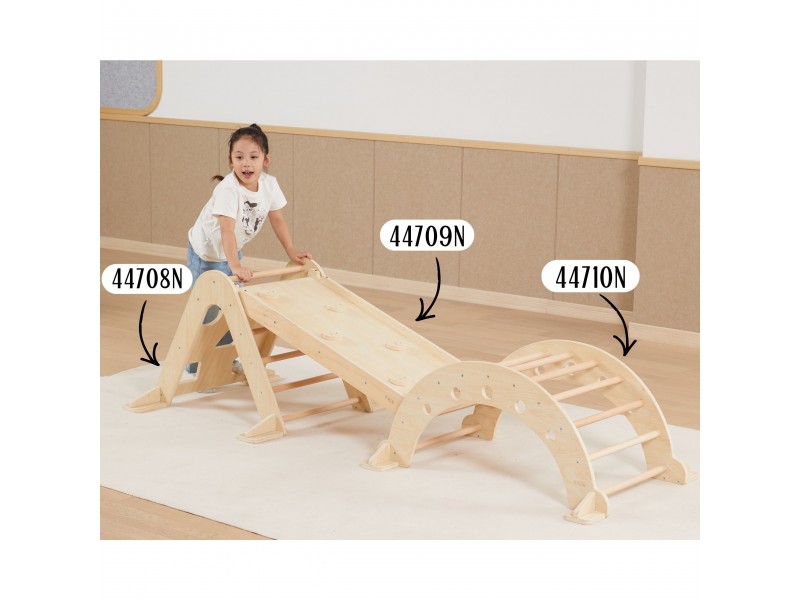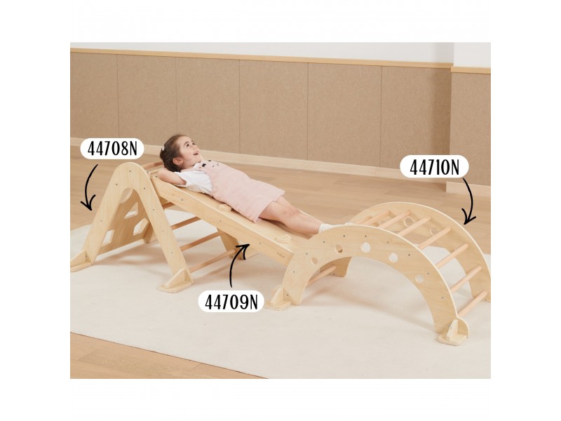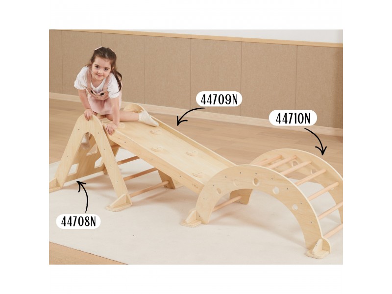 Piklerio laipiojimo trikampis yra neatsiejamas namų žaidimų aikštelės elementas, puikiai atitinkantis Montessori filosofiją. Laipiodamas vaikas lavina stambiąją motoriką, treniruoja pusiausvyros pojūtį bei gerina savo kūno judesių koordinaciją. Lipimas kopėtėlėmis visada turėtų vykti prižiūrint suaugusiajam. Vienoje pusėje vaikas ras klasikines kopėtėles, o kitoje – laipiojimo sienelę su įvairiomis angomis. Prie šio rinkinio galima atskirai įsigyti medinę čiuožyklą (44709), kurią apvertus galima naudoti kaip papildomą sienelę, arba jos pagalba sujungti šį laipiojimo trikampį kartu su sūpuokle (44708).