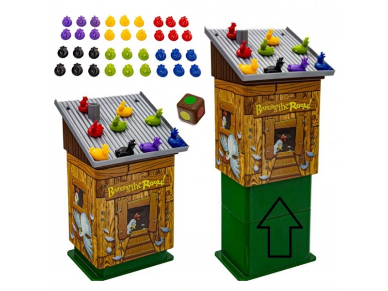 • Žaidimas vyksta metant specialų kauliuką su spalvomis, kurios atitinka viščiukų spalvas. Kai žaidėjas išridena spalvą, jis turi kuo greičiau uždėti atitinkamos spalvos viščiuką ant vištidės stogo.
