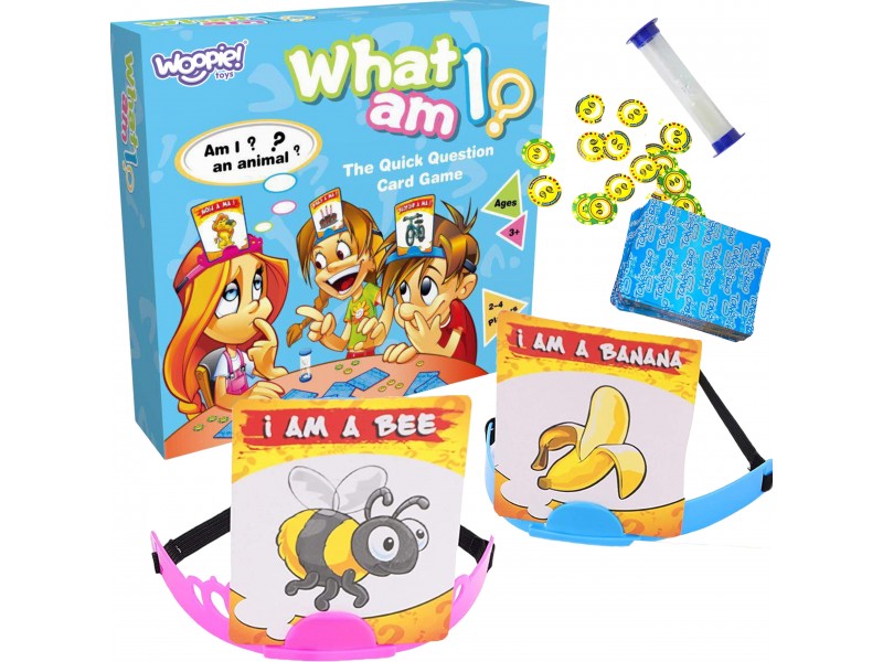 Prekės ženklo Woopie pramoginis žaidimas „Kas aš esu?“ – tai ilgos valandos linksmybių visai šeimai. Tai paprastas ir įtraukiantis žaidimas, kuriame gali dalyvauti nuo 2 iki 4 žaidėjų. Kiekvienas žaidėjas išsitraukia po vieną kortelę ir, nežiūrėdamas į ją, įsideda į lankelį ant galvos. Jūsų užduotis – užduoti klausimus kitiems dalyviams, į kuriuos jie gali atsakyti „taip“ arba „ne“, ir atspėti, kas esate, kol smėlio laikrodyje nesibaigė laikas. Laimi tas, kuris greičiausiai atspėja ir atsikrato savo žetonų. Ši veikla padeda plėsti žodyną bei lavina priežastinio mąstymo įgūdžius. Tai puiki pramoga vakarėliams, o dėl estetiškos pakuotės žaidimas yra ideali dovana.