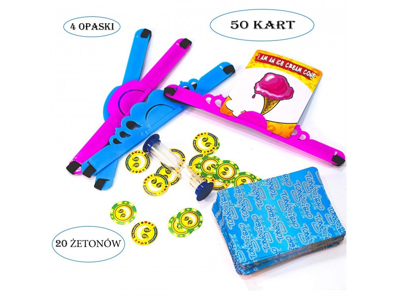 - Nežiūrėdamas į savo kortelę, kiekvienas žaidėjas įsideda ją į lankelį ir užsideda ant galvos.