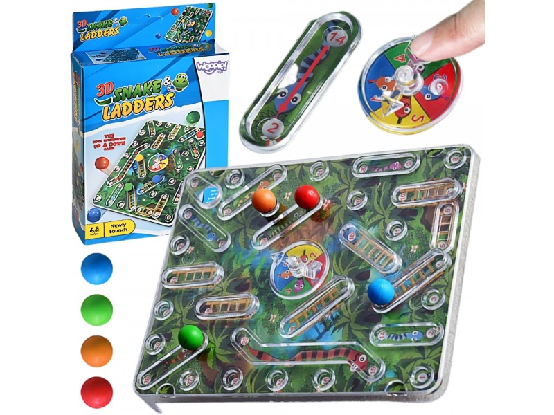 Atraskite žavų klasikinio žaidimo „Gyvatės ir kopėčios“ pasaulį modernioje, trimatėje versijoje! Šis unikalus Woopie prekės ženklo žaislas derina tradicinį žaidimą su vikrumo ir tikslumo elementais, siūlydamas vaikams nepamirštamą, emocijų kupiną nuotykį. Spalvinga žaidimo lenta su atogrąžų džiunglių motyvais, skaidriais tuneliais, įmontuotu suktuku ir keturiais spalvotais kamuoliukais užtikrina valandų valandas trunkančias pramogas 2–4 žaidėjams.