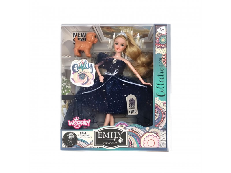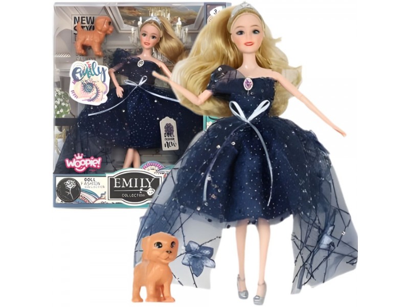 Woopie Royal lėlė Emi su šuniuku ir tamsiai mėlyna suknele