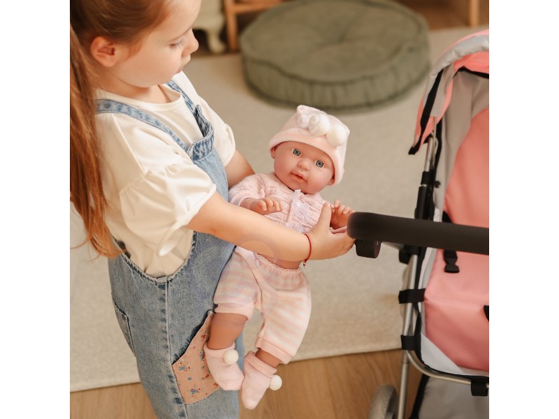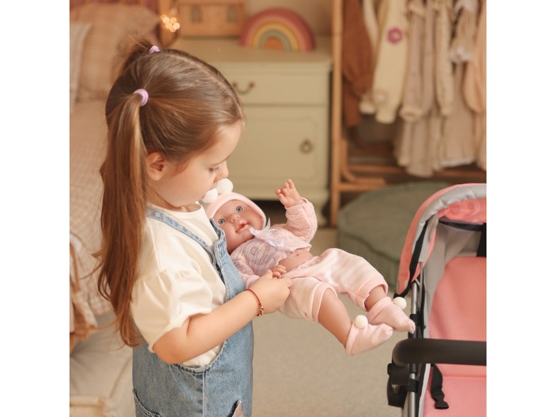 Žavinga lėlė kūdikis Lily iš WOOPIE prekės ženklo ROYAL serijos privers kiekvieną vaiką ją įsimylėti! Užtenka pažvelgti į jos mielą veidelį ir negalėsite susilaikyti jos neapkabinę. Ji vilki minkštą, rožinį megztinį, užsegamą kaspinėliais, ir kelnes su dryželiais. Tiek kojinės, tiek nuimama kepuraitė turi prisiūtus žavius pomponus, kurie užbaigia visą stilių. Lėlė atrodo kaip tikras kūdikis ir mėgsta būti nešiojama ant rankų – ji laukia rūpestingos priežiūros ir apkabinimų! Su lėle Lily kiekviena diena virsta gražiu nuotykiu, kupinu švelnumo ir džiaugsmo. Tai puiki dovana kiekvienam vaikui, svajojančiam apie savo nuosavą, mylimą kūdikį.