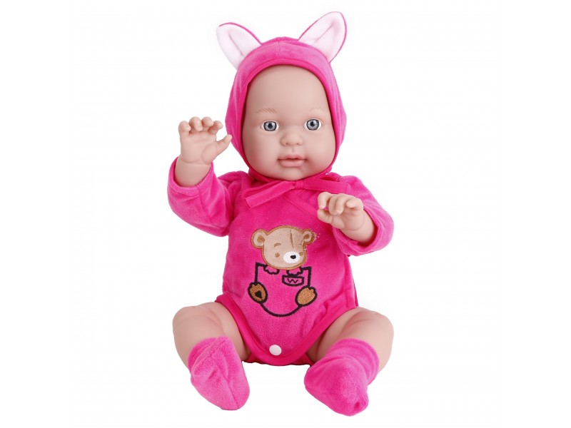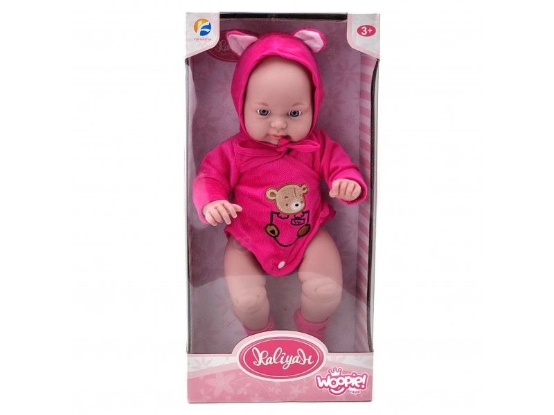 „Woopie“ prekės ženklo lėlė kūdikis akimirksniu pavergs kiekvieno vaiko širdį. Šis žavingas, 46 cm ūgio mažylis yra aprengtas mielu mėlynu smėlinuku su meškiuko gobtuvu bei prie jo derančiais batukais. Lėlė turi judančias galūnes, todėl ją galima lengvai pasodinti arba pastatyti. Žaisdamas su šia lėlyte, vaikas mokosi rūpestingumo, ugdo empatijos jausmą bei atsakomybę. Žaislas pagamintas itin kruopščiai, tiksliai atkartojant tikro kūdikio bruožus, o naudojamos medžiagos yra labai malonios ir švelnios liesti.