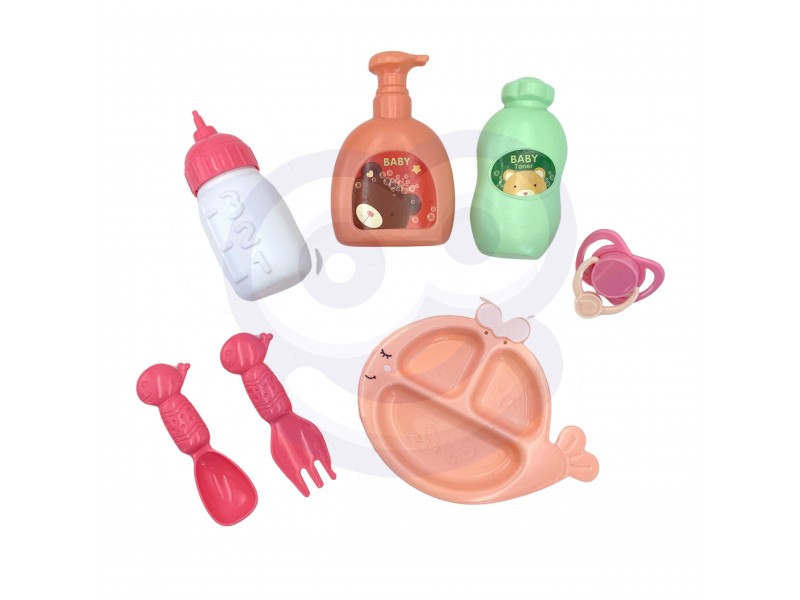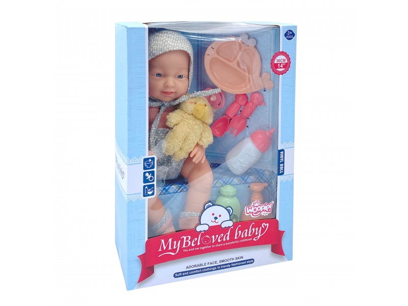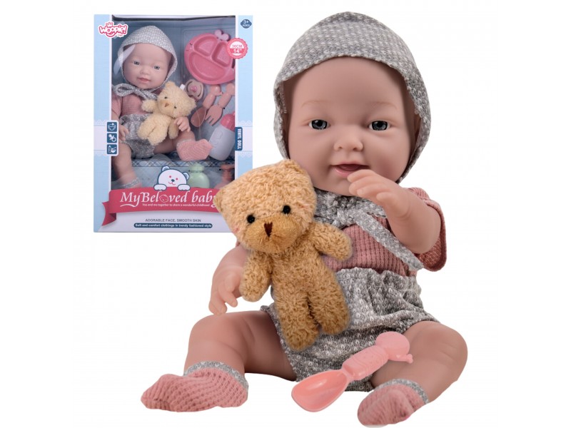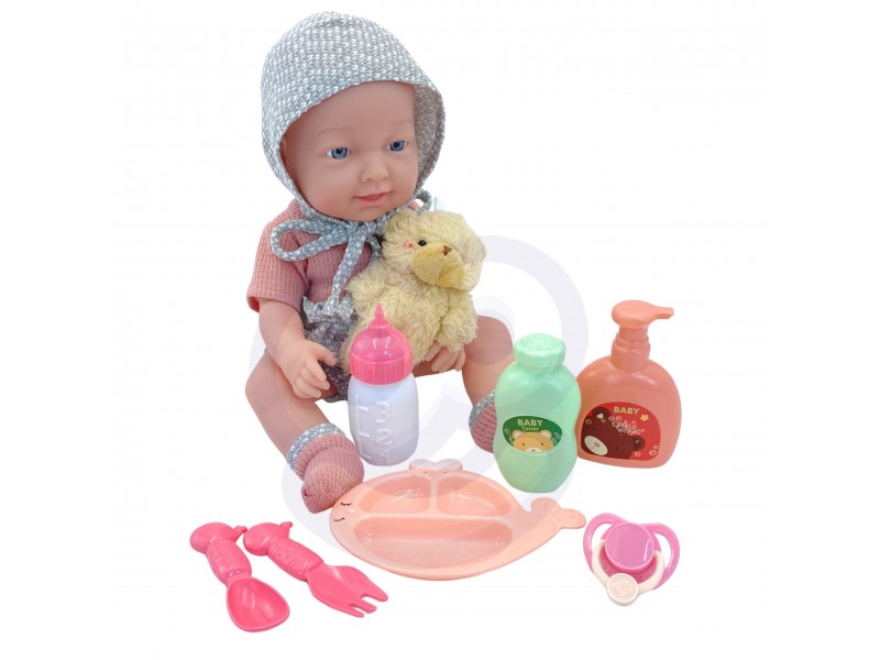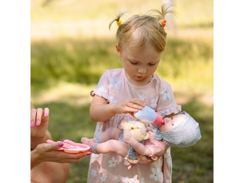 Lėlė kūdikis su priedais | 36 cm su meškiuku ir maitinimo rinkiniu | Woopie 50988