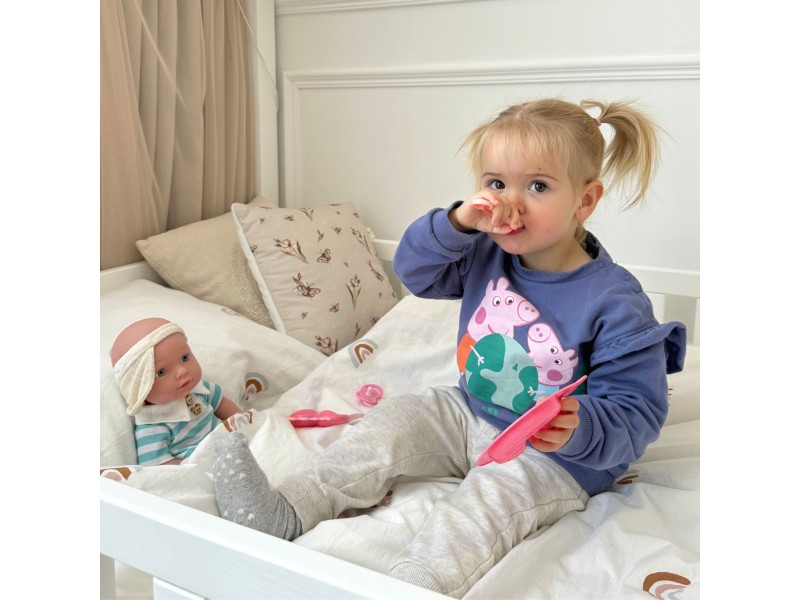 Auklės rinkinys – tai išskirtinis žaislas, sukurtas vaikams, kurie mėgsta įsijausti į suaugusiųjų vaidmenį. 30 cm dydžio lėlė yra kruopščiai pagaminta iš minkštos gumos, todėl yra maloni liesti ir saugi žaisti. Lėlės rankos, kojos ir galva sukiojasi, kas leidžia jai užimti įvairias pozicijas žaidimo metu, o nuimami drabužėliai suteikia mažyliams galimybę kūrybiškai perrengti lėlę. Rinkinyje yra visi būtini priedai lėlei prižiūrėti. Čia rasite maitinimo rinkinį, priemones vystymui bei žaidimams. Į pasivaikščiojimus vaikai galės pasiimti lėlę kartu su kuprine-nešiokle, o tai dar labiau skatins vaikų įsitraukimą, vaizduotę ir kūrybiškumą.