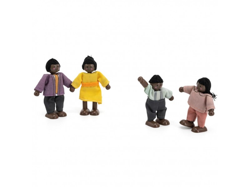Viga medinių lėlių šeimos rinkinys - tamsiaodės lėlės vaidmenų žaidimams