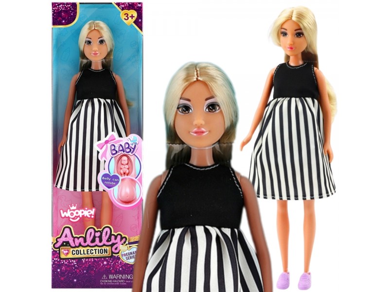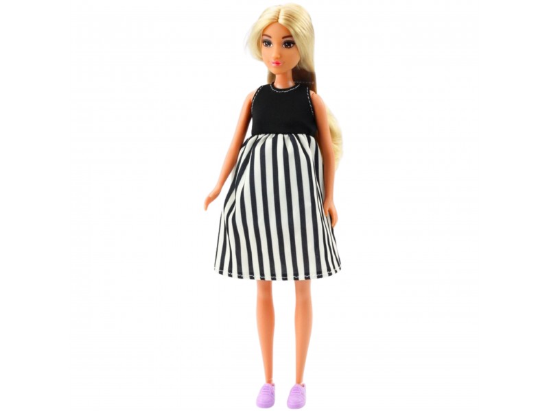Nėščia lėlė Lily | Suknelė su juodais ir baltais dryžiais | Woopie Royal 57727