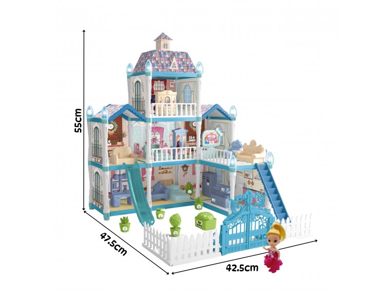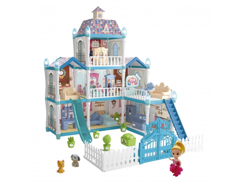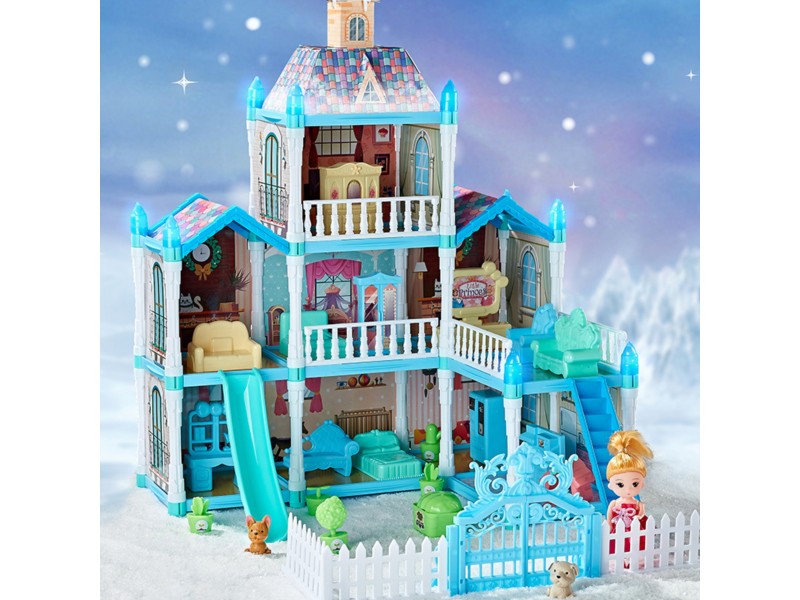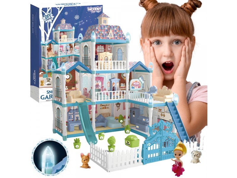 Leiskitės į magišką nuotykį su šiuo įspūdingu „Woopie“ lėlių namu! Tai ne šiaip namelis, o tikri trijų aukštų rūmai, atveriantys duris į beribį vaizduotės pasaulį. Rinkinys, kurį sudaro net 191 dalis, apima viską, ko reikia nepamirštamiems žaidimams: mielą lėlytę, du augintinius (šuniuką ir kačiuką), daugybę baldų ir aksesuarų bei magiškas šviečiančias dekoracijas, kurios pavers žaidimą pasaka net ir sutemus. Žavinga, žiemos sodo įkvėpta mėlynos ir rožinės spalvų paletė suteikia nameliui ypatingo jaukumo. Tai puiki dovana, lavinanti kūrybiškumą, socialinius įgūdžius ir skatinanti kurti nepakartojamas istorijas.