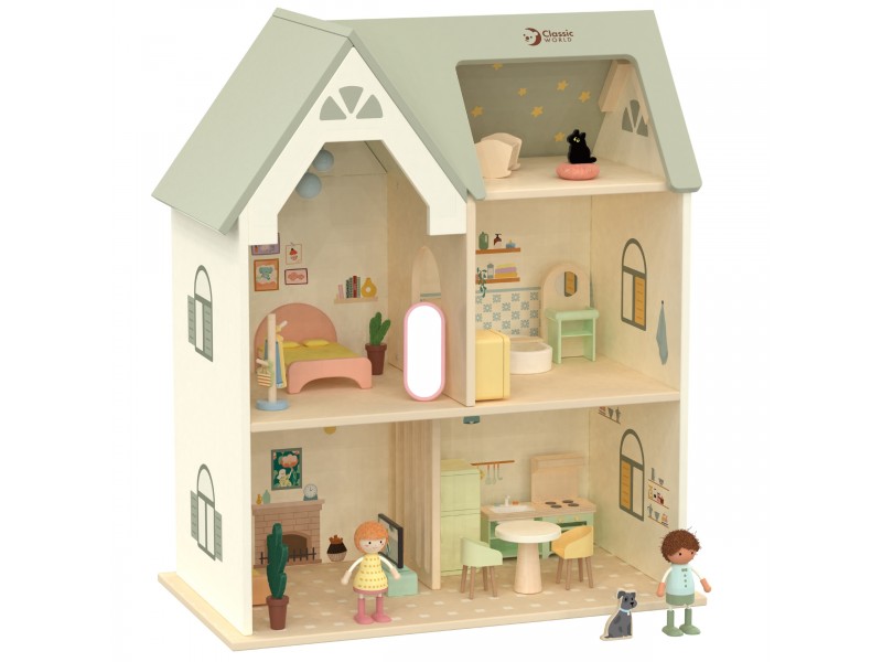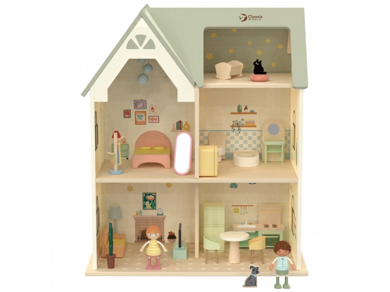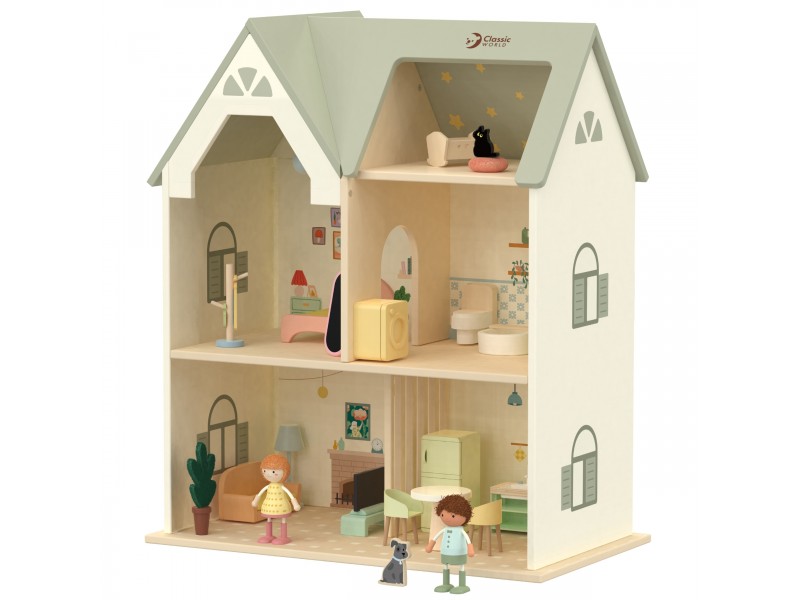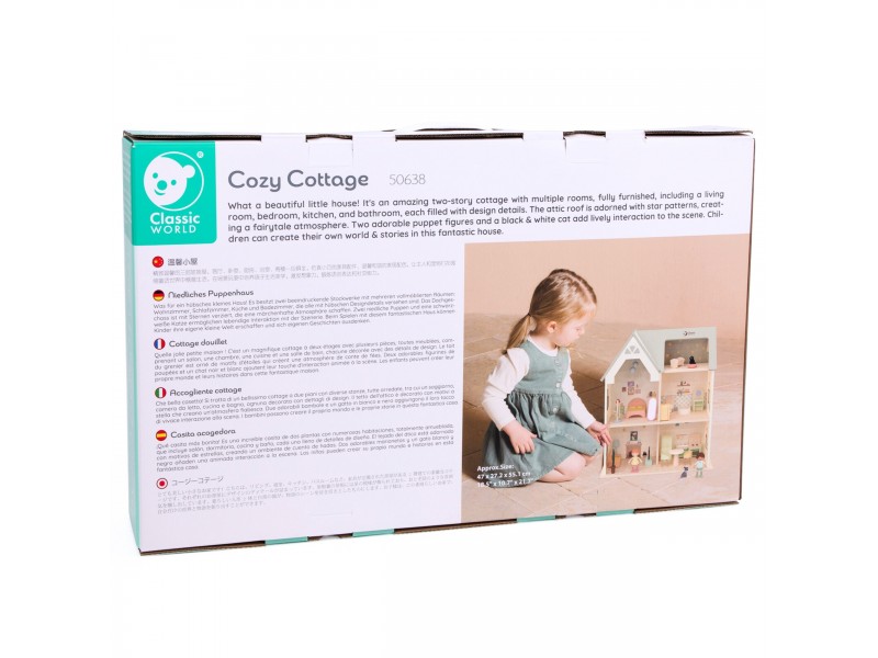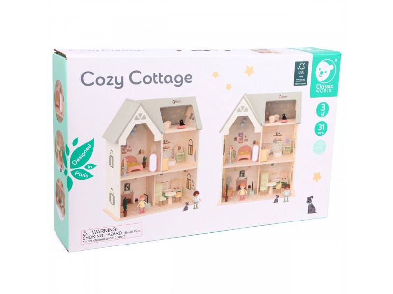 Prekės ženklo Classic World medinis lėlių namelis „Jaukus kampelis“ – tai išskirtinė, dviejų aukštų rezidencija, stebinanti savo detalėmis ir pagaminimo kokybe. Šis medinis lėlių namelis sukurtas lavinti vaizduotę, suteikiant vaikams daugybę erdvės kūrybiniams vaidmenų žaidimams. Viduje yra visiškai įrengti kambariai, tokie kaip svetainė, miegamasis, virtuvė ir vonios kambarys, kas leidžia kurti begales namelio gyventojų gyvenimo scenarijų.