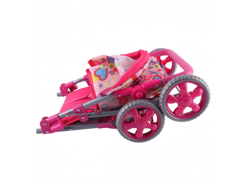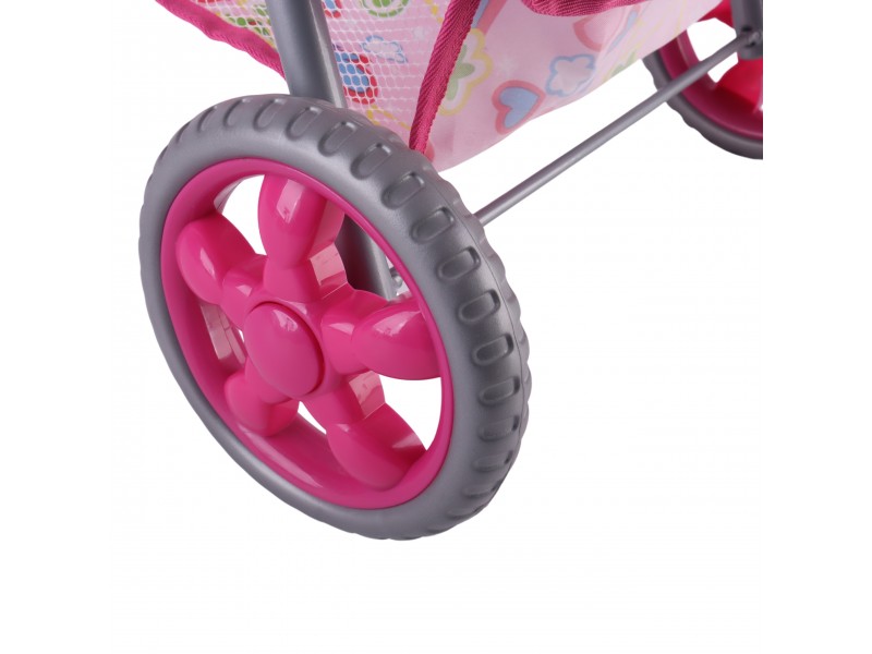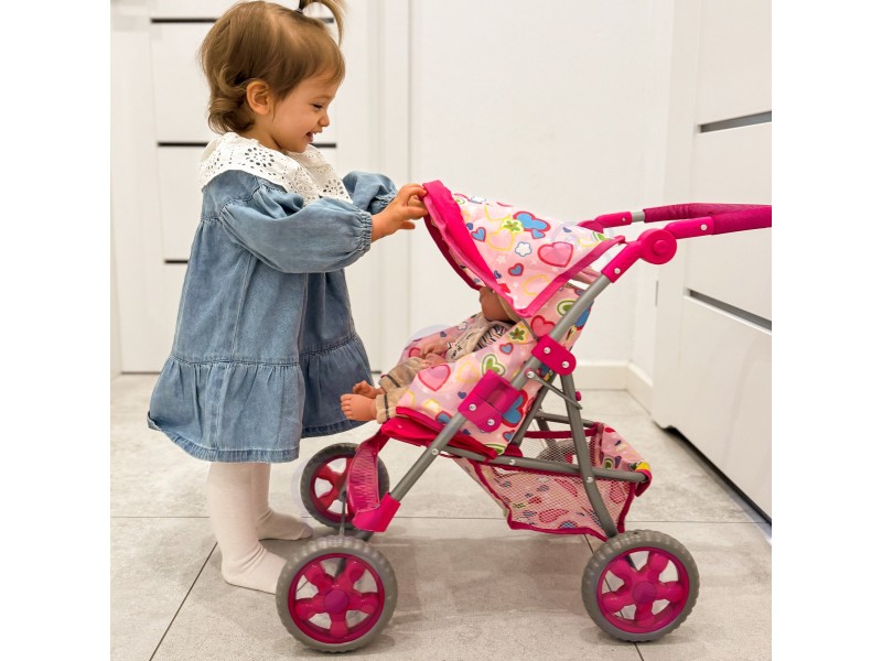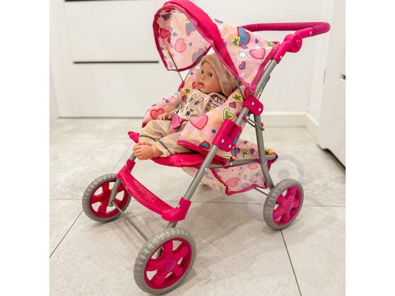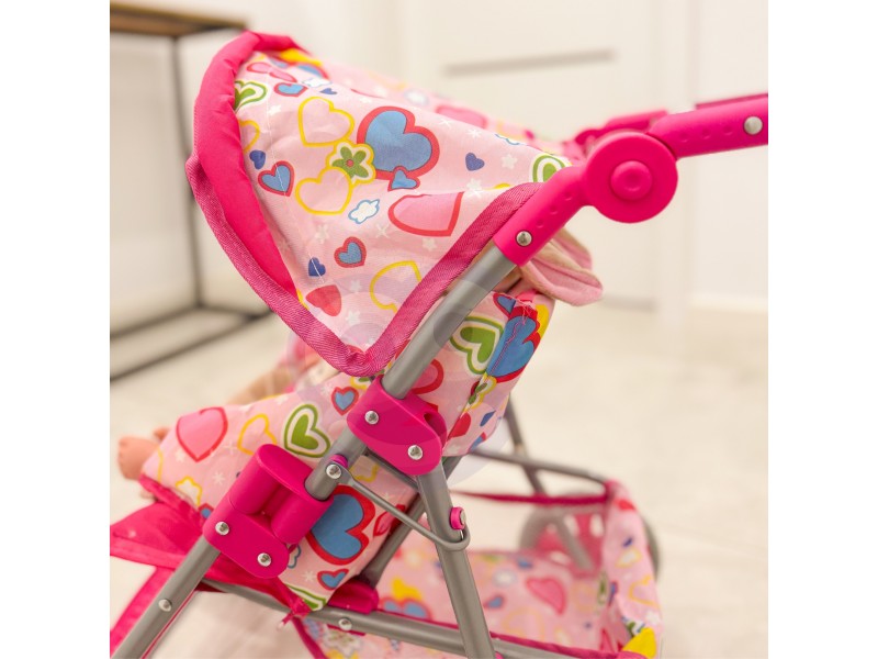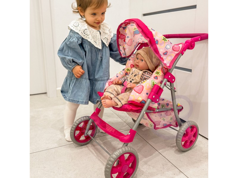 "Woopie" prekės ženklo vežimėlis lėlėms yra idealus pasirinkimas kiekvienai mažajai, mėgstančiai žaisti namus ir rūpintis savo lėlėmis. Šis vežimėlis išsiskiria lengvu, tačiau labai stabiliu rėmu, kuris užtikrina patogumą ir saugumą žaidimo metu. Vežimėlis yra pilnai sukomplektuotas: turi kojų atramą, stogelį, apsaugantį nuo saulės, saugos diržus bei praktišką krepšį smulkmenoms, todėl garantuoja pilną funkcionalumą ir komfortą. Papildomai įrengta minkšta rankena palengvina vairavimą, o tylūs, gerą sukibimą turintys putplasčio ratai puikiai tinka važinėti tiek namuose, tiek lauke. Baigus žaisti, vežimėlį galima lengvai sulankstyti, taip sutaupant vietos laikymui. Stilingas dizainas su širdelėmis paverčia jį išskirtiniu priedu bet kuriai lėlei.