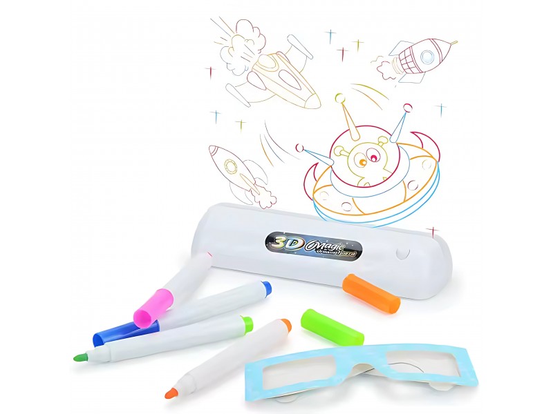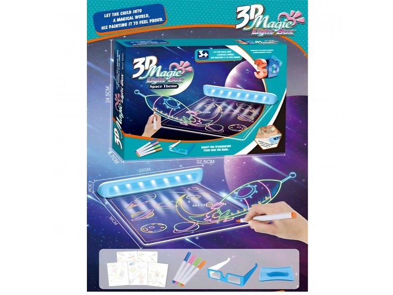 Nustebinkite savo vaiką šiuolaikine piešimo forma! WOOPIE prekės ženklo magiška 3D lenta leidžia kurti trimačius piešinius naudojant specialius fluorescencinius flomasterius ir trafaretus. Dėl įmontuoto LED apšvietimo ir pridedamų 3D akinių, kiekvienas nupieštas kūrinys tiesiog atgyja! Tai puikus lavinamasis žaislas, kuris skatina vaiko kūrybiškumą, padeda lavinti smulkiąją motoriką ir vaizduotę.