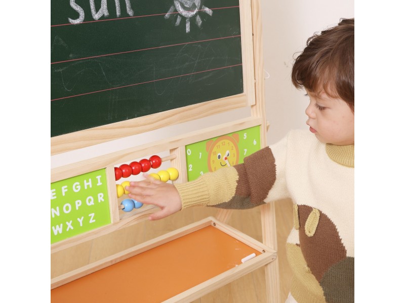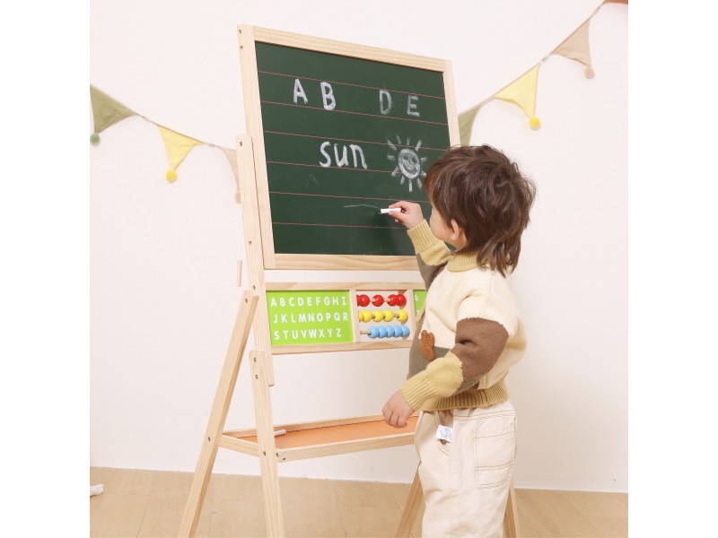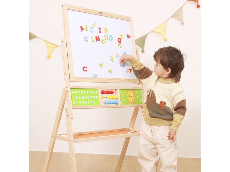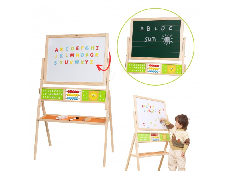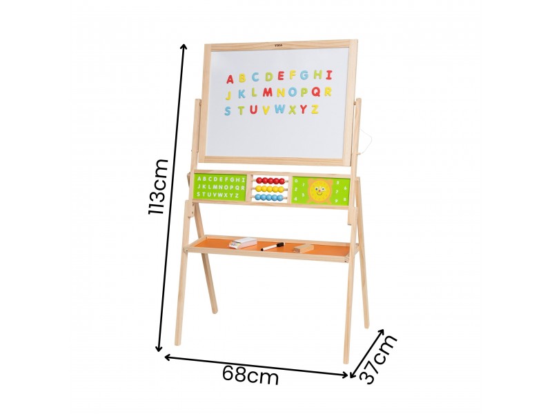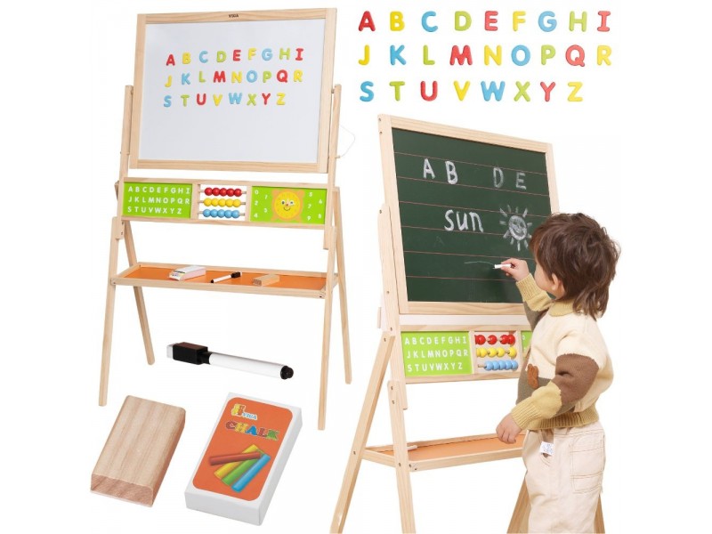 Atraskite magišką mokslo ir kūrybos pasaulį su Viga medine edukacine lenta, kuri pavers jūsų vaiko kambarį tikra mažojo genijaus dirbtuve! Ši dvipusė konstrukcija – tai ne tik vieta meniniams pasirodymams su kreida ir flomasteriais, bet ir visapusiškas tobulėjimo centras su skaitliukais, laikrodžiu ir abėcėle. Dėl magnetinio paviršiaus ir gausaus priedų rinkinio kiekviena diena tampa nauju, žaviu nuotykiu su raidėmis ir skaičiais. Tvirtas medinis dizainas ir saugūs užraktai garantuoja, kad žaidimas bus ne tik įtraukiantis, bet ir saugus kiekvienam mažyliui nuo 3 metų. Tai investicija, jungianti nerūpestingą kūrimo džiaugsmą su natūraliu pagrindinių mokyklinių įgūdžių įgijimu!