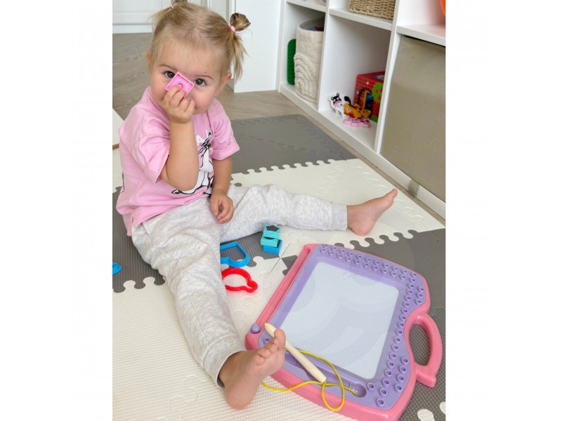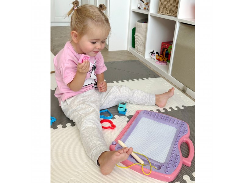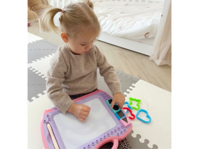 Magiška magnetinė lenta iš „WOOPIE“ prekės ženklo suteiks jūsų vaikui ilgų valandų kūrybinių pramogų! Lenta ne tik skatina piešti ir rašyti, bet ir padeda mažyliui susikaupti, nusiraminti bei išlieti savo emocijas. Piešimas lavina vaiko koncentraciją ir leidžia jam atsipalaiduoti. Didžiausias šios lentos privalumas – galimybė kurti begalę paveikslėlių. Vos vienas specialaus slankiklio brūkštelėjimas, ir piešinys išnyksta, atverdamas erdvę naujiems šedevrams! Patogi rankena leis mažajam menininkui nešiotis lentą visur su savimi ir kurti bet kur ir bet kada.