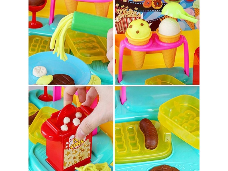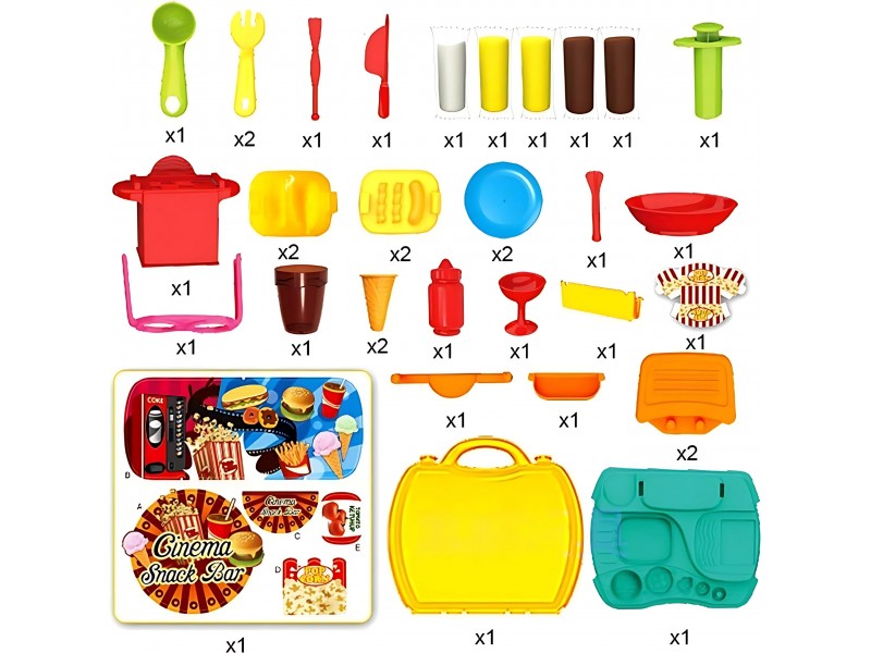 Gausybė priedų garantuoja įtraukiantį žaidimą valandų valandas. Vaikas gali įsijausti į virėjo, pardavėjo ar kliento vaidmenį, kurdamas savo scenarijus ir patiekalus. Rinkinys leidžia paruošti mėgstamus užkandžius, tokius kaip ledai, bulvytės, mėsainiai ar spragėsiai. Tereikia suformuoti norimą produktą iš modeliavimo tešlos ir patiekti jį lėkštutėje arba specialiose pakuotėse. Aukšta atlikimo kokybė ir saugios medžiagos užtikrina saugią ir ilgalaikę pramogą. Tai puiki dovana, kuri tikrai pradžiugins kiekvieną vaiką ir suteiks jam daug džiaugsmo.