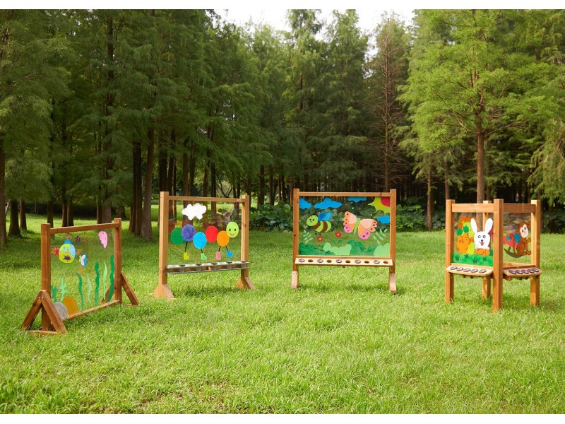 - Žaidimų nameliai, aikštelės, sūpynės iškylos stalai, baldai ir sensoriniai takeliai vaikams