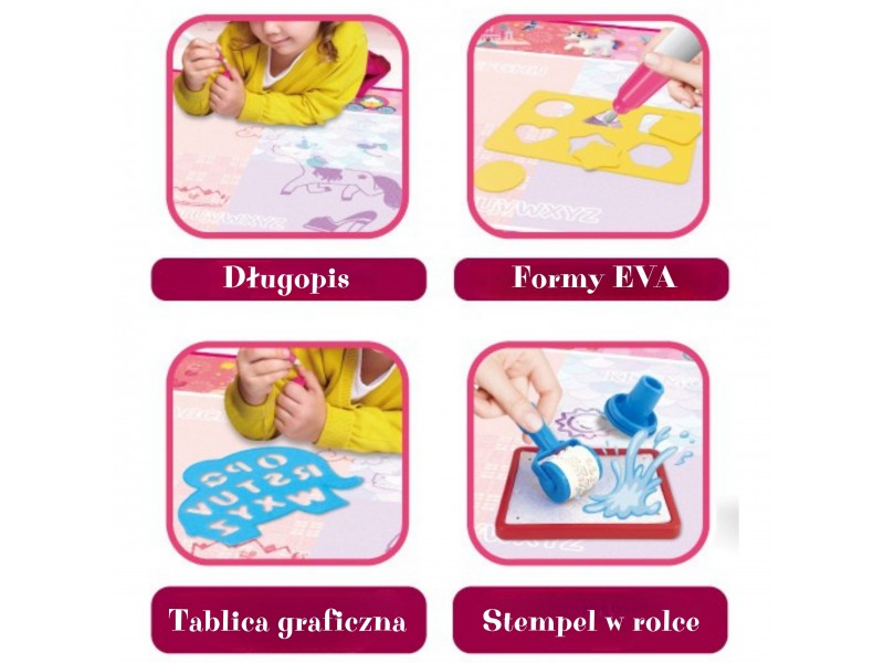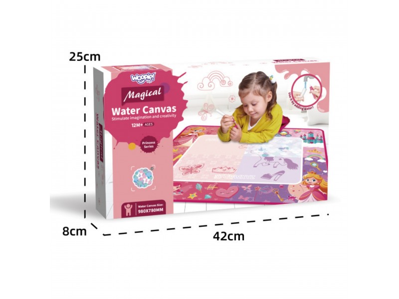 Atraskite magišką pramogą be jokios netvarkos! Prekės ženklo Woopie vandens kilimėlis "Magical Water Canvas" – tai kūrybinė erdvė, kurioje vaikas gali piešti ir tapyti naudodamas tik vandenį. Tiesiog pripildykite specialų rašiklį vandens, kad sukurtumėte spalvingus paveikslėlius, kurie po kurio laiko išnyksta ir užleidžia vietą naujiems kūriniams. Kilimėlis pasižymi žavingu princesių motyvu, todėl kiekviena mažoji menininkė pasijus ypatinga. Tai puikus žaislas vaikams jau nuo 12 mėnesių amžiaus – jis lavina vaizduotę, kūrybiškumą ir rankų darbštumą.
