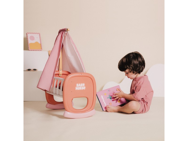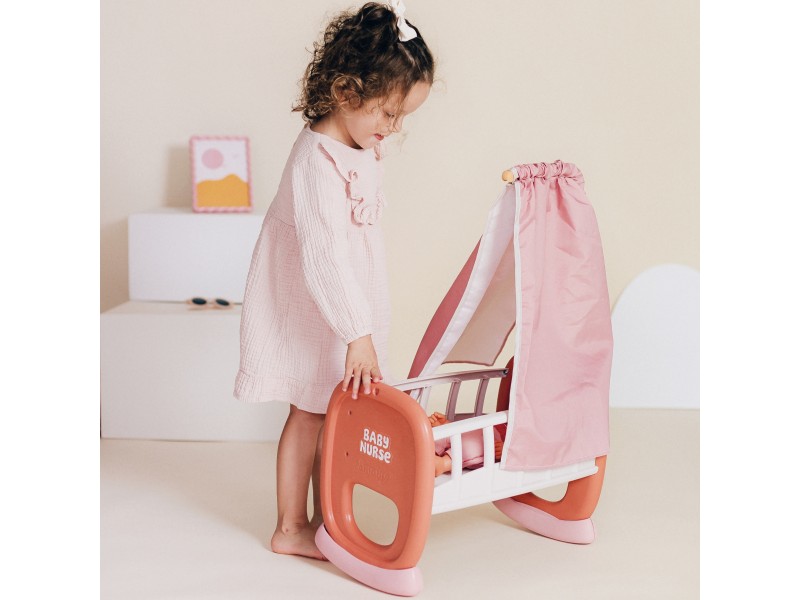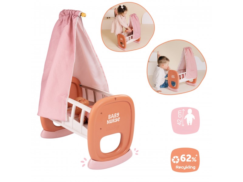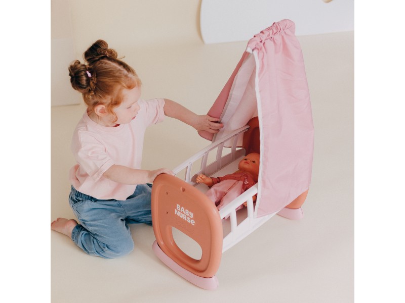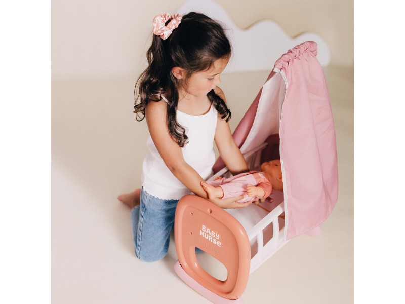 Šis nuostabus „Baby Nurse“ kolekcijos lėlių lopšys su baldakimu yra puikus žaislas kiekvienai mažajai lėlių mamytei! Migdydama ir sūpuodama savo lėlytę, mergaitė lavins empatiją, rūpestingumą bei vaizduotę. Žavingas, smulkiu raštu margintas medžiaginis baldakimas ir švelnios mergaitiškos spalvos pavers šį lopšį tikra kambario puošmena. Aukštos kokybės medžiagos ir užapvalinti kampai užtikrina žaislo saugumą ir ilgaamžiškumą, todėl galėsite būti ramūs dėl savo vaiko. Šis rinkinys skatina kūrybiškumą, atsakingumo jausmą ir savarankiškumą per malonų ir prasmingą žaidimą.
