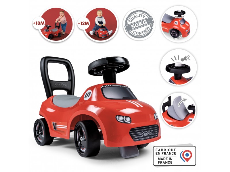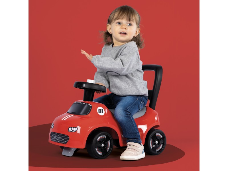 Ši ryški ir stilinga „Smoby“ transporto priemonė yra puikus pasirinkimas mažyliams, pradedantiems aktyviai tyrinėti aplinką. Tai ne tik smagus žaislas, bet ir priemonė, padedanti vaikams lavinti motorinius įgūdžius bei koordinaciją. Dėl itin stabilios konstrukcijos ir apgalvoto dizaino, tėvai gali būti ramūs dėl savo atžalų saugumo. Mašinėlė sukurta taip, kad tarnautų kaip stumdukas pradedantiesiems vaikščioti ir kaip paspiriamas automobilis jau pramokusiems judėti.