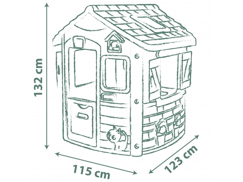 - Patvarumas ir atsparumas: Namelis yra atsparus UV spinduliams ir kintančioms oro sąlygoms, todėl idealiai tinka naudoti lauke, spalvos ilgai išlieka ryškios.