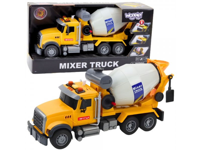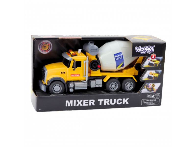 Ši tikroviška betono maišyklė iš Woopie prekės ženklo su besisukančiu būgnu, šviesomis ir garsais užtikrina įtraukiantį žaidimą bei skatina vaizduotės ir rankų įgūdžių vystymąsi. Rankiniu būdu sukamas būgnas veikia kaip tikroje mašinoje, o šviesos ir garso efektai – įspėjamieji signalai, garso signalas ar variklio gausmas – suteikia žaidimui tikroviškumo. Ryški geltona spalva patraukia vaiko dėmesį, o patvarus plastikas garantuoja saugumą ir ilgalaikį naudojimą. Rinkinyje esančios baterijos leidžia iškart pradėti veiksmą statybų aikštelėje!