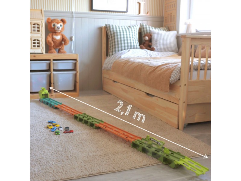 - Automobilių trasa: įspūdingas 2,1 metro ilgis.