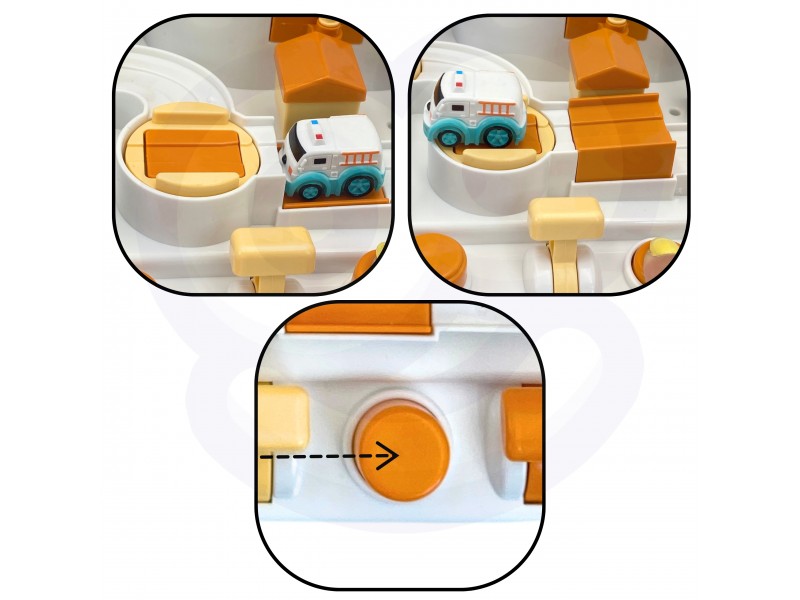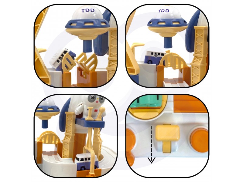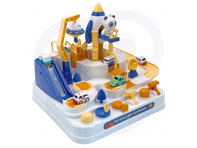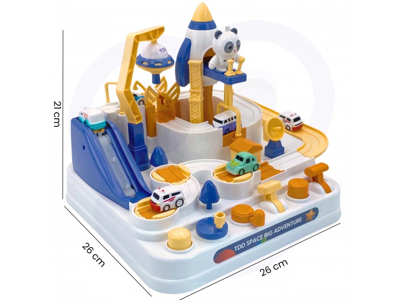 Žaislas pasižymi ryškiomis spalvomis ir patraukliu kosminiu dizainu. Interaktyvūs elementai, tokie kaip vairas ir valdymo mygtukai, leidžia vaikui pasijusti tikru pilotu. Trasa puikiai tinka tiek savarankiškam žaidimui, tiek varžyboms su draugais ar tėvais, kas ilgiau išsilaikys trasoje.