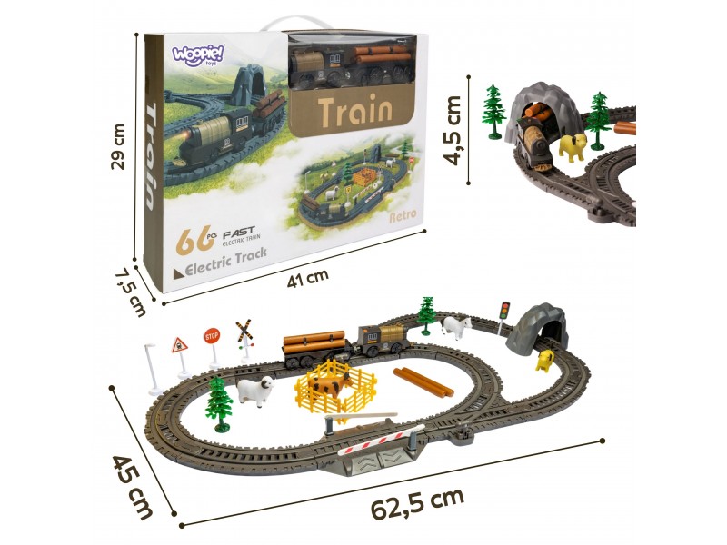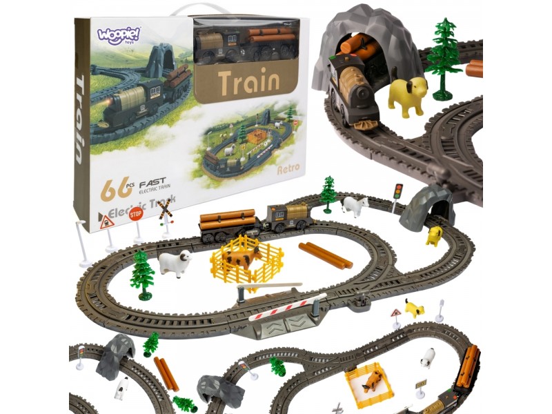 Elektrinis traukinukas su trasa | Retro ferma XL 66 dalys | Woopie 57345