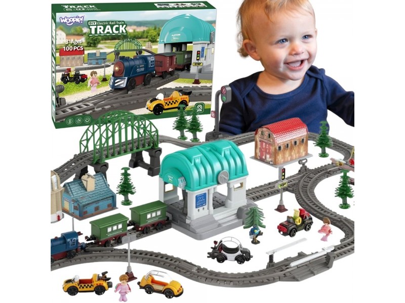 Woopie elektrinis traukinukas - XXL miestelis su 100 detalių