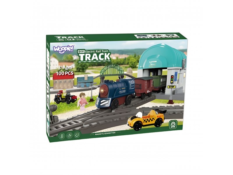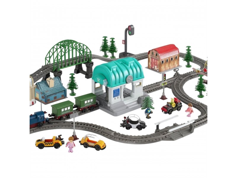 Magnetinės jungtys leidžia lengvai ir stabiliai sujungti vagonus, o lokomotyvo judėjimas bėgiais atrodo kaip tikra kelionė traukiniu! Tai ne tik paprastas traukinukas – tai visa miestelio scena, kurioje vaikas gali lavinti savo kūrybiškumą, konstruodamas įvairias bėgių konfigūracijas ir vaidindamas kasdienio gyvenimo scenas. Elektrinis lokomotyvas važiuodamas bėgiais kerta tiltą ir tunelį, sustoja stotyje, o visa tai lydi garsai ir judesys, kurie žavi mažuosius. Vaikas mokosi planavimo, loginio mąstymo ir lavina rankų darbo įgūdžius, kurdamas įdomius kelionių ir krovinių pervežimo scenarijus. Rinkinį sudaro 100 elementų, pagamintų iš patvarių ir saugių medžiagų, atsparių intensyviam žaidimui.
