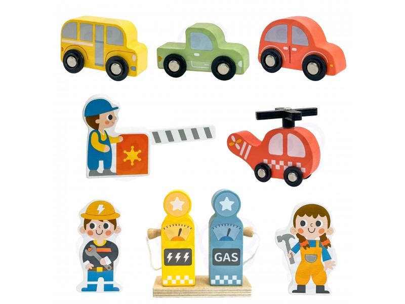 • Vaizduotę: skatina kurti įvairius žaidimų scenarijus ir istorijas, pasitelkiant transporto priemones, figūrėles ir degalinės aplinką.