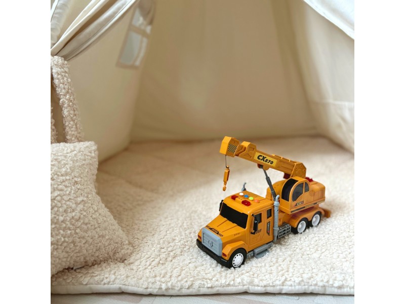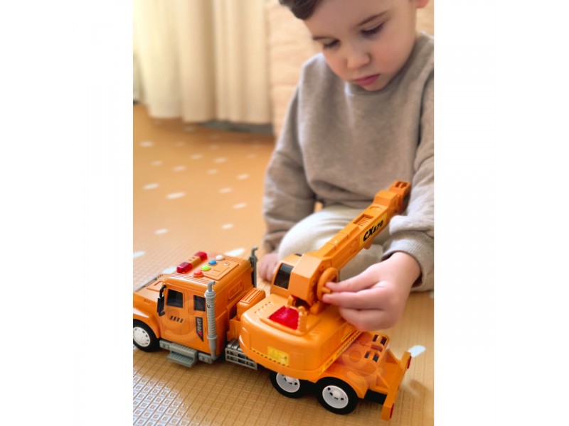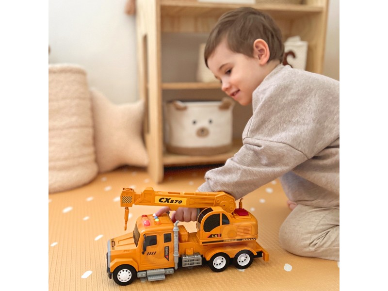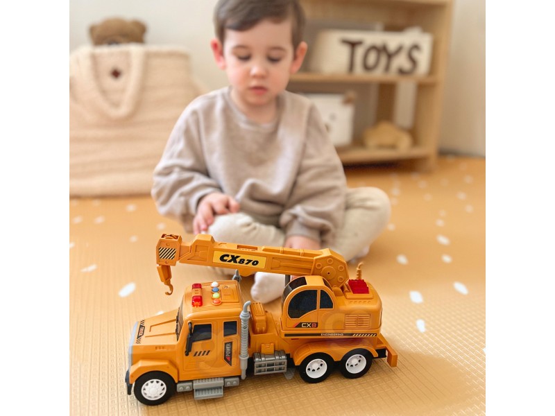 WOOPIE prekės ženklo interaktyvus kranas su judančiu kabliu pavers kiekvieną jūsų vaiko žaidimą nuostabiu nuykiu! Šis žaislas, aprūpintas tikroviškais garsais, šviesos efektais ir judančiais elementais, suteiks valandų valandas kūrybiško džiaugsmo. Kranas pasižymi daugybe funkcijų, tokių kaip: reguliuojamas strėlės aukštis ir ilgis, galimybė valdyti kablio lyną bei mirksinčios šviesos ant stogo – visai kaip tikroje statybinėje technikoje. Žaislas pagamintas 1:14 masteliu, o kiekviena detalė yra kruopščiai išdirbta! Nuotykiai laukia – leiskite vaikui įsijausti į svajonių automobilio operatoriaus vaidmenį!