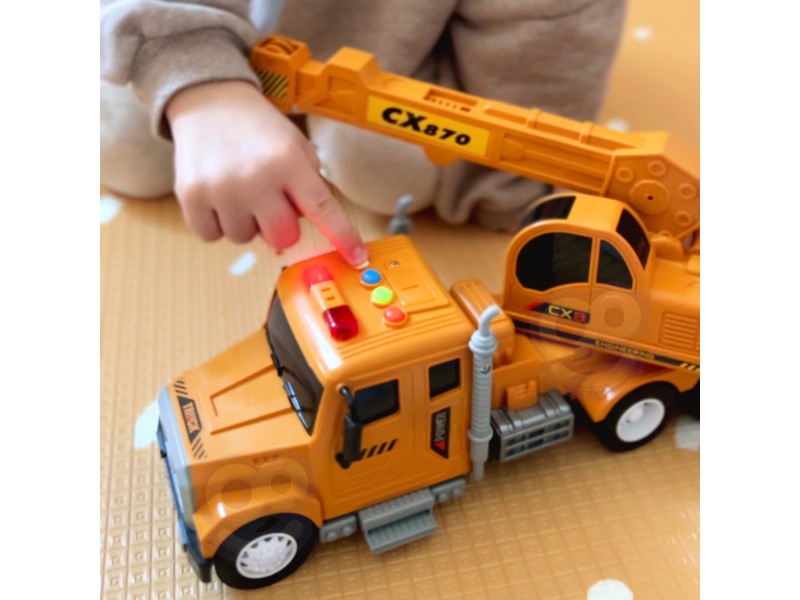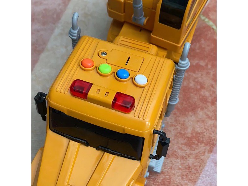 - Šviesos ir garso efektai – ant sunkvežimio stogo yra 4 spalvoti mygtukai, kurie aktyvuoja šviesas ir įvairius garsus.
