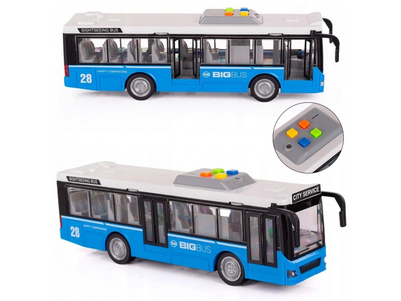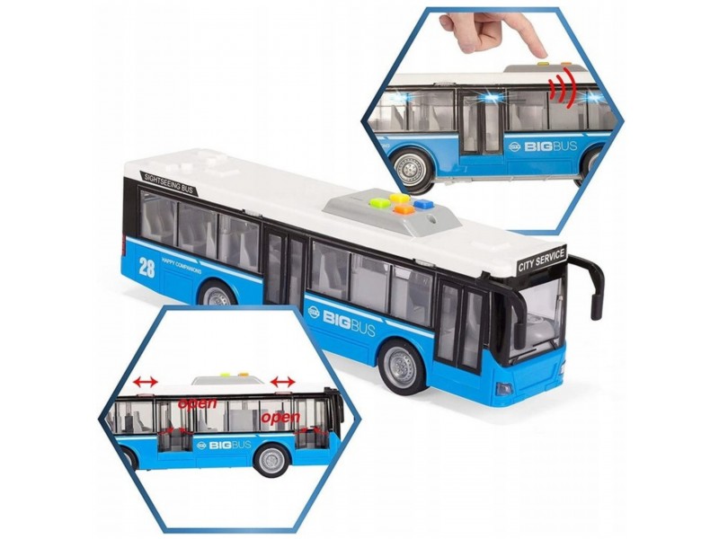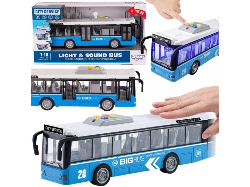 Tikras džiaugsmas mažiesiems miesto transporto gerbėjams! WOOPIE žaislinis miesto autobusas yra puikus pasirinkimas vaikams, besidomintiems automobiliais ir viešuoju transportu. Realistiškos detalės, garso ir šviesos efektai bei atsidarančios durys suteikia daugybę smagių akimirkų ir lavina vaiko vaizduotę. Šis autobusas turi daugybę integruotų funkcijų, kurios neleis nuobodžiauti. Jame įdiegti įvairūs garso efektai, salono apšvietimas bei atidaromos priekinės ir galinės durys. Žaislas turi keturis guminius ratus ir frikcinę pavarą – pakanka jį stumtelėti pirmyn ar atgal, ir jis pats nuvažiuos net kelis metrus.