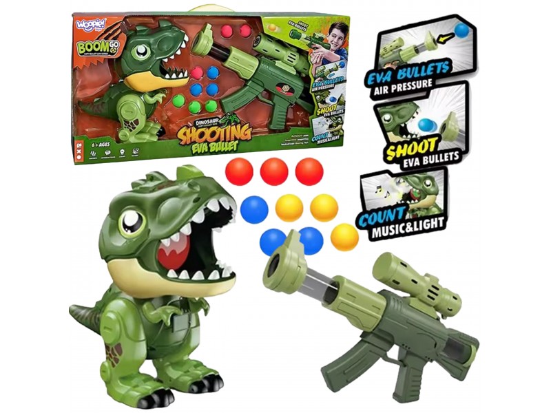 Woopie interaktyvi kamuoliukų šaudyklė su dinozauru
