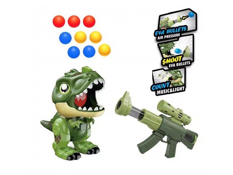 - Interaktyvus dinozauras – žaislas, paįvairinantis žaidimą paprastu šautuvu. Modernūs mechanizmai lemia, kad šaudant į dinozauro nasrus, jis kai kuriuos kamuoliukus atmuša liežuviu. Pataikius į nasrų vidų, jis išleidžia vandens garus – tai įmanoma dėl ant galvos sumontuoto mažo rezervuaro, į kurį reikia įpilti šiek tiek vandens. Kai dinozauras „prarys“ visus kamuoliukus, tiesiog atsekite jo uodegą ir išimkite juos iš žaislo vidaus. Dabar galite tęsti žaidimą kaip geriausias dinozaurų medžiotojas pasaulyje!