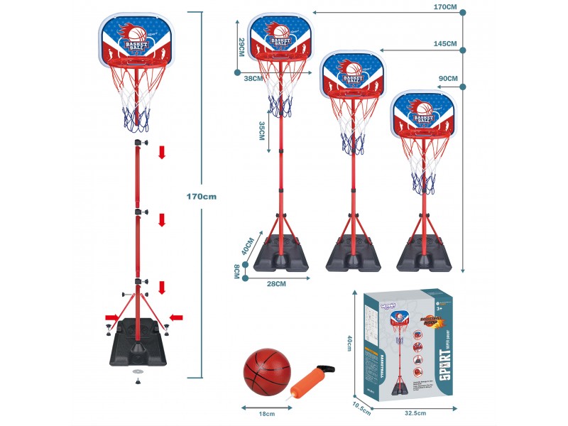 - Krepšinio stovas turi 3 aukščio reguliavimo lygius: 90, 145 ir 170 cm.